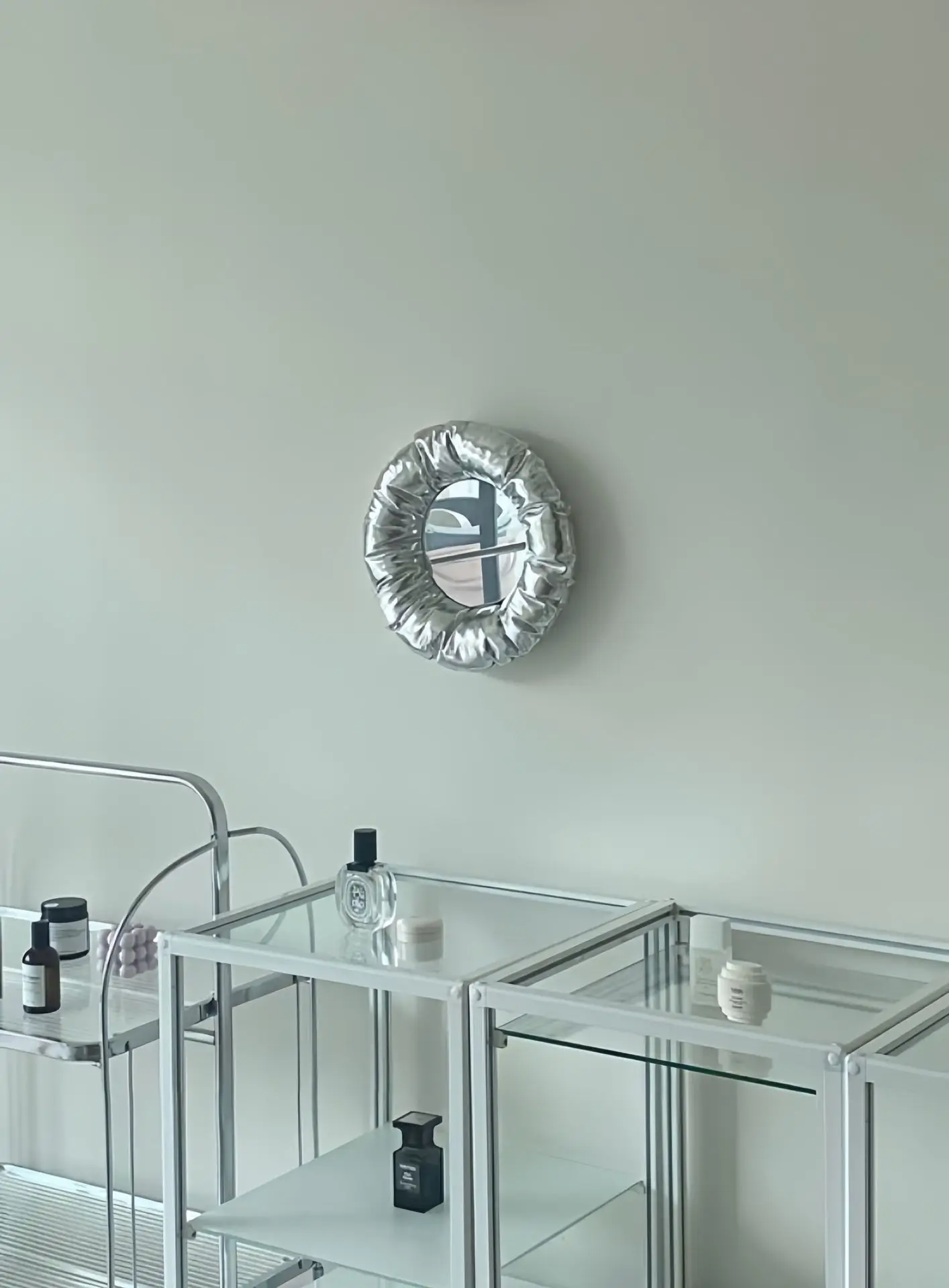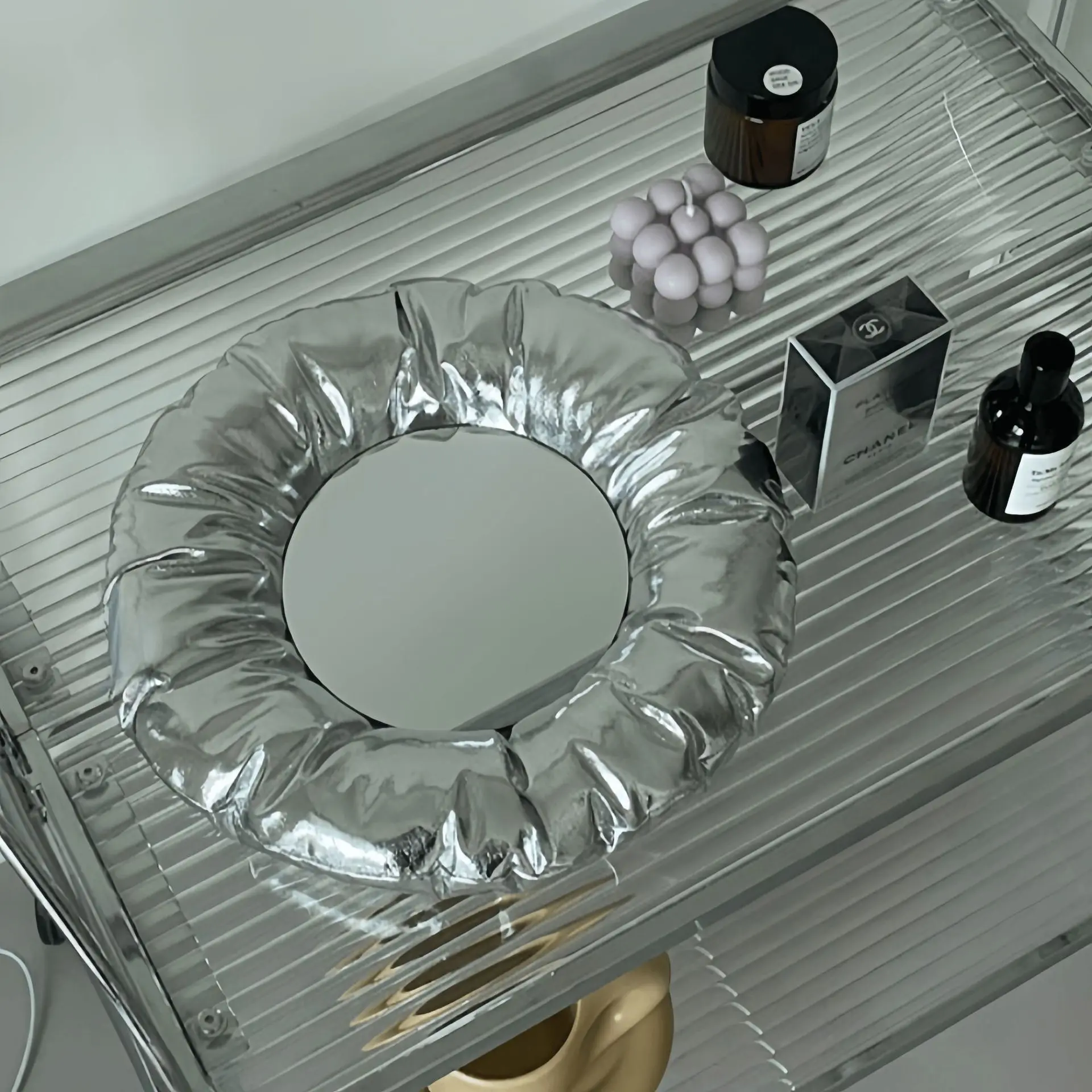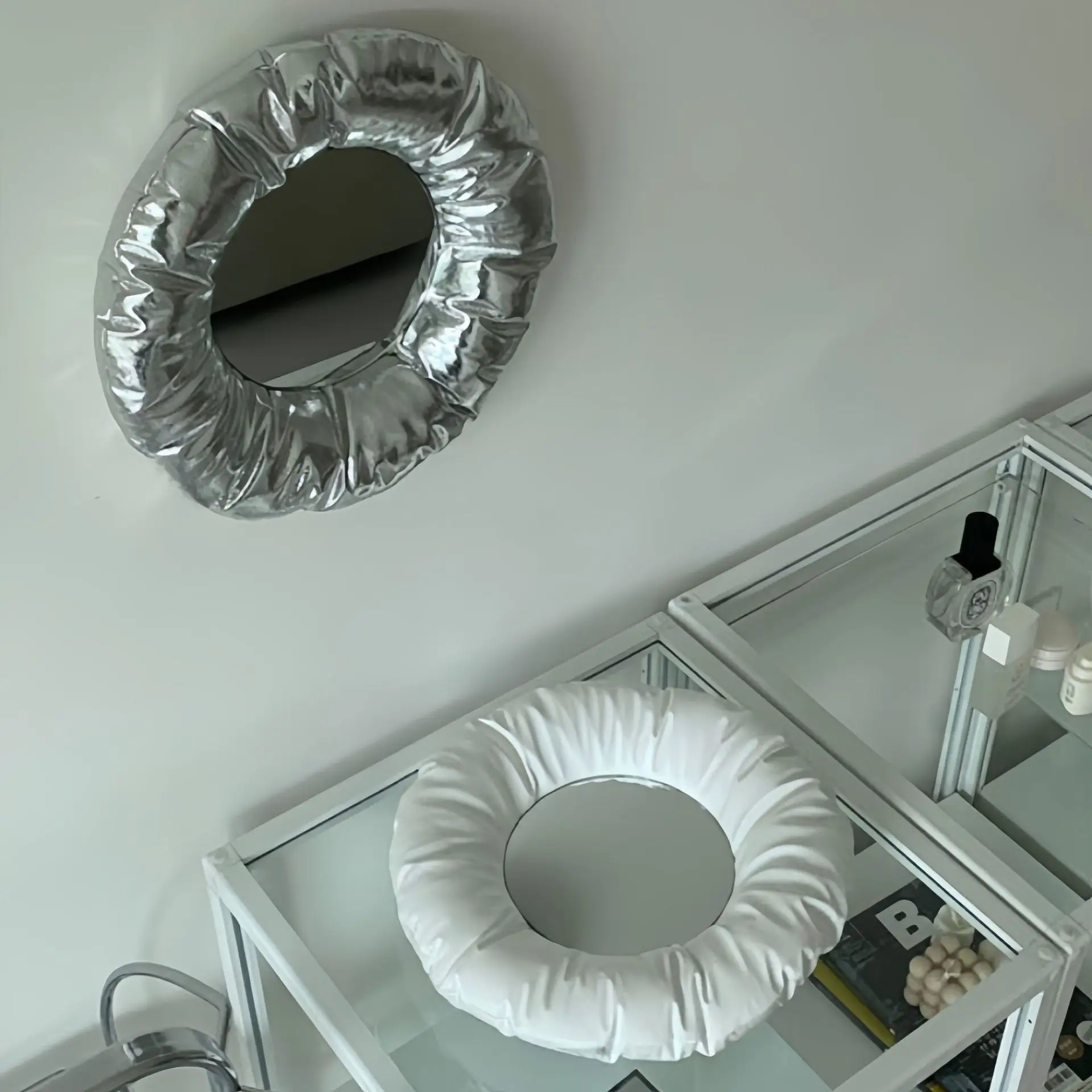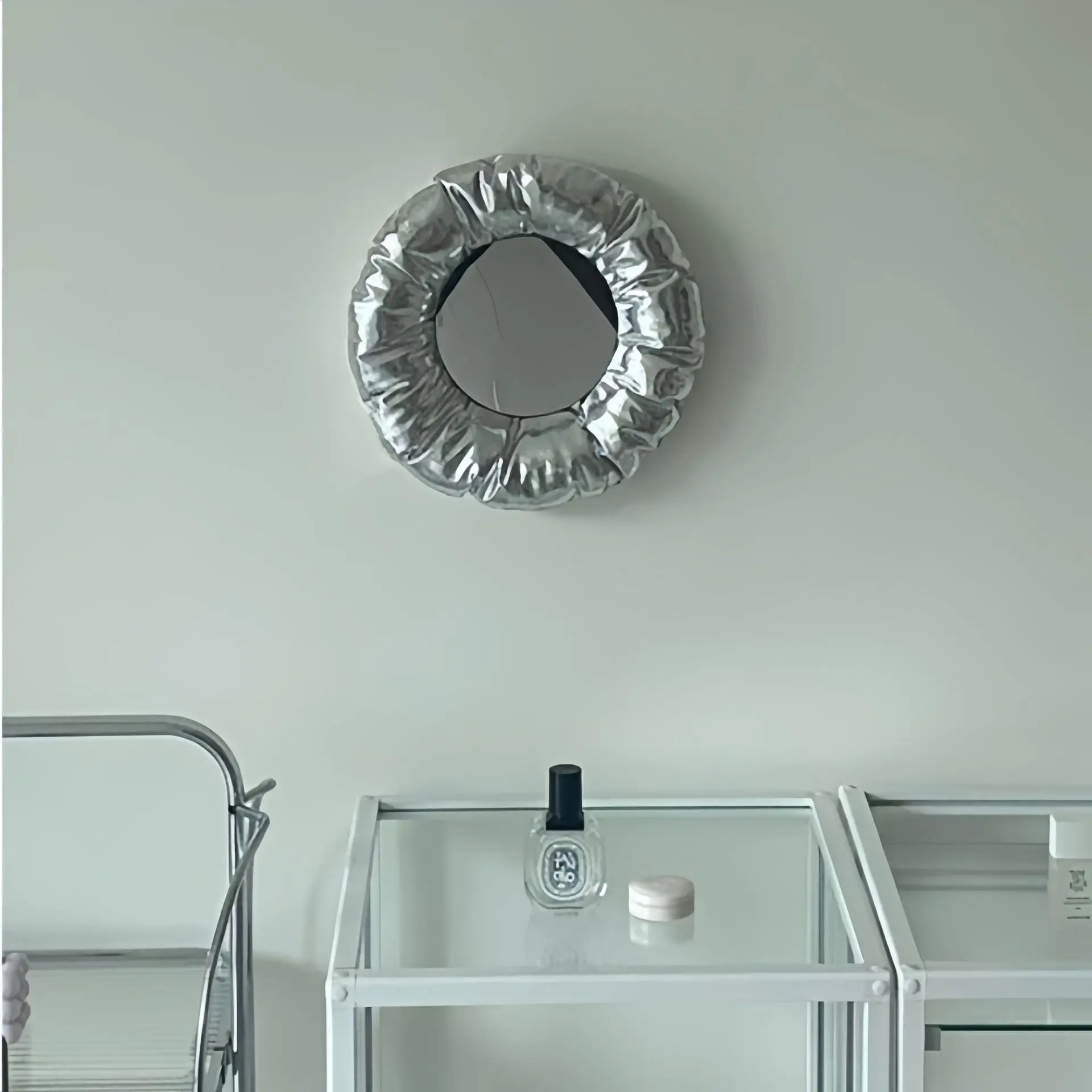 Miroir de forme ronde Ins, décoration murale créative suspendue pour salon et chambre à coucher, miroir de maquillage en coton, décoration murale semi-ronde