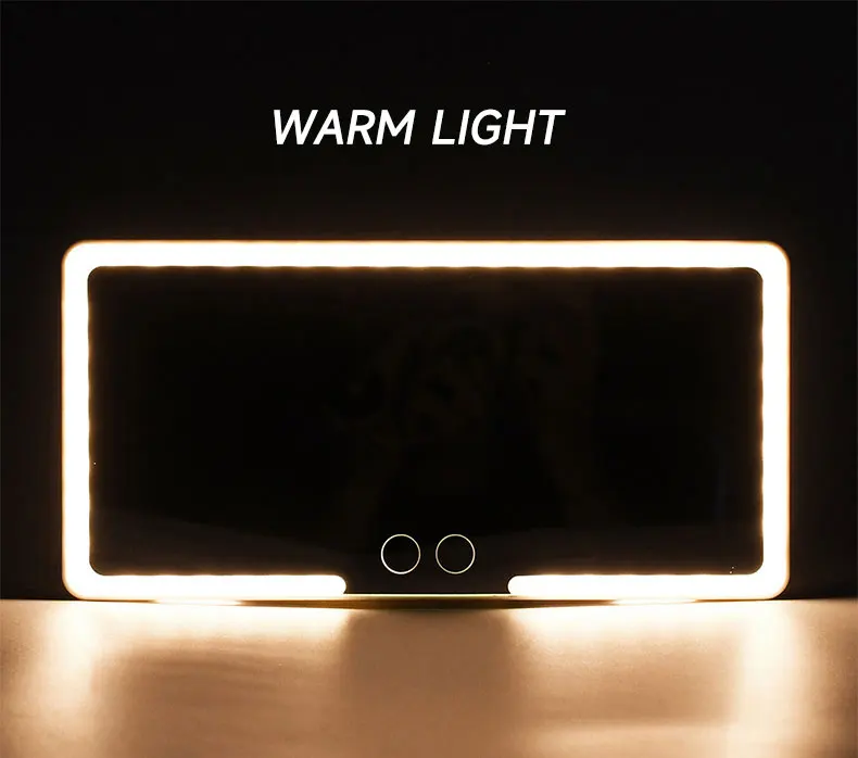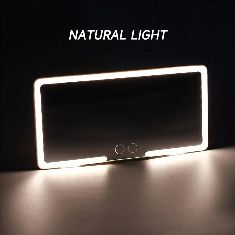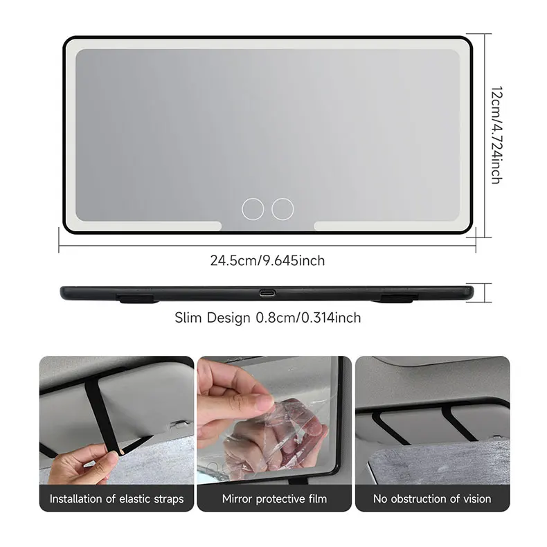 3. Conception d’écran tactile: le miroir de courtoisie de voiture dispose de 2 capteurs pour basculer entre les deux modes d’éclairage blanc froid et jaune chaud. Et appuyez longuement pour régler la luminosité des lumières.