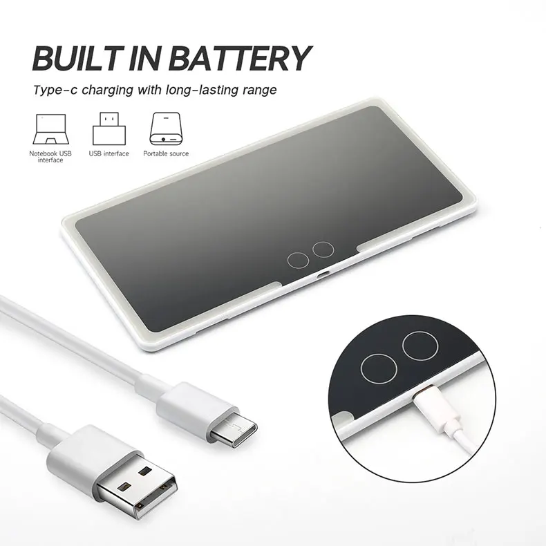 4. Facile à charger: le miroir de la visière de la voiture peut être chargé via la voiture, la prise, l’ordinateur, l’alimentation mobile, ce qui vous permet d’utiliser le miroir de courtoisie partout et à tout moment.