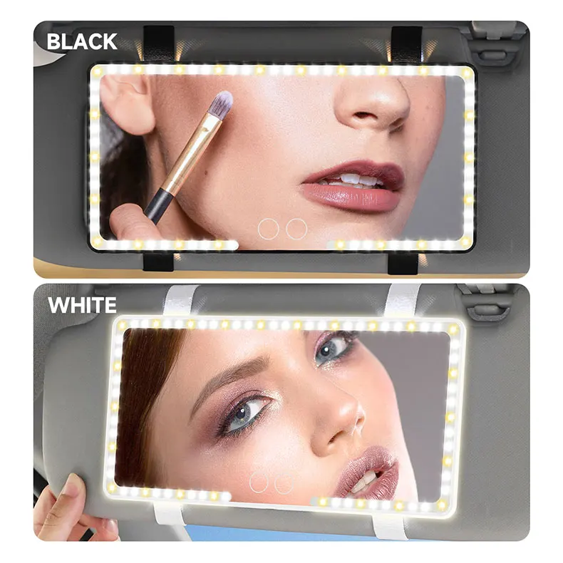 Le miroir de courtoisie pour visière de voiture a 48 lumières blanches et 12 lumières jaunes, ce qui le rend plus lumineux. En outre, le miroir de maquillage de voiture est contrôle. Vous pouvez changer les deux couleurs des lumières (blanc froid, jaune chaud) et appuyer longuement pour ajuster la luminosité des lumières. Grâce à la fonction mémoire, le miroir de beauté de la voiture avec lumières retrouve ses derniers réglages de luminosité et de couleur. La batterie intégrée rend le miroir de visière de voiture rechargeable et facile à utiliser, et l’alimentation est fournie simplement par un appareil avec un port USB, tel qu’une banque d’alimentation, une prise, ordinateur, etc.