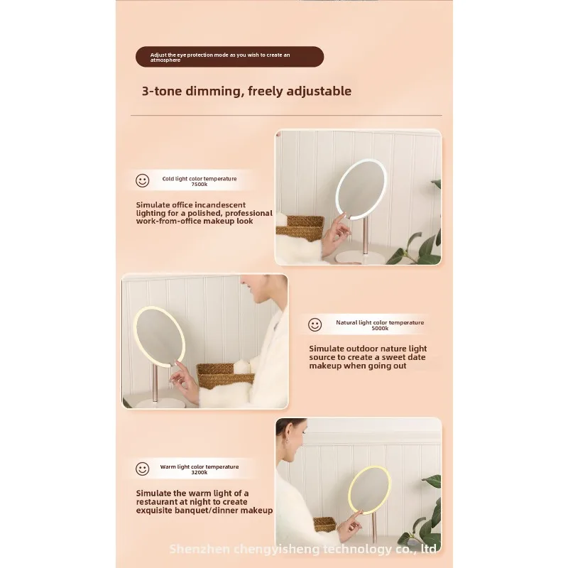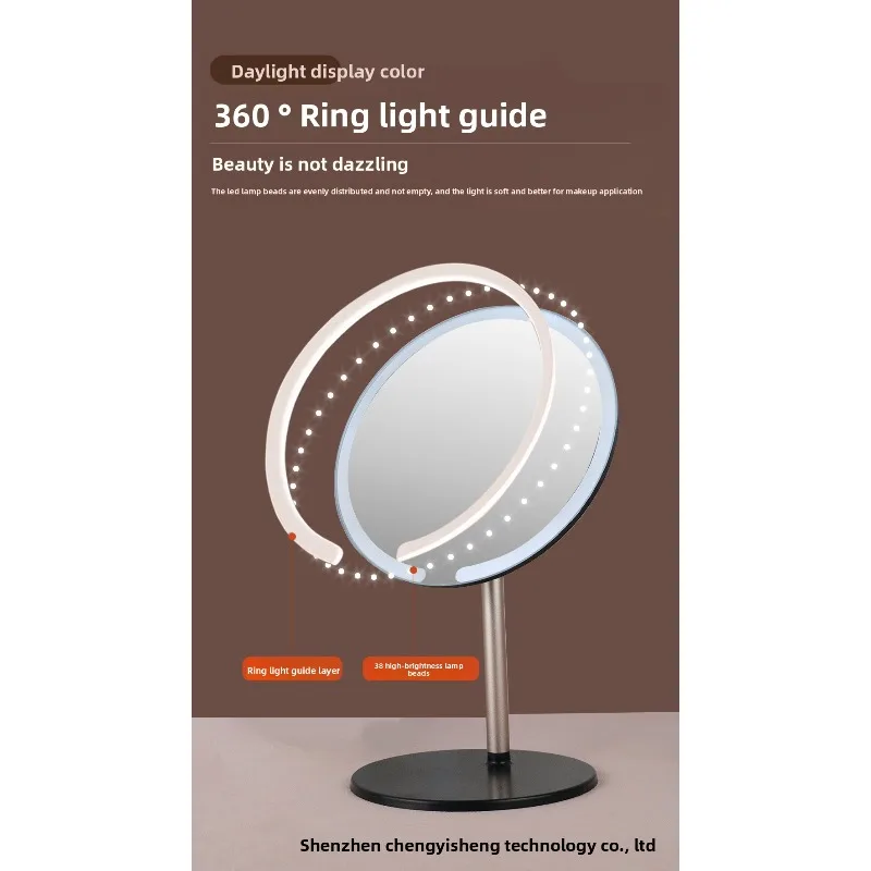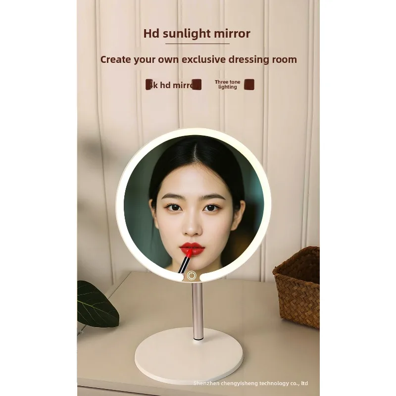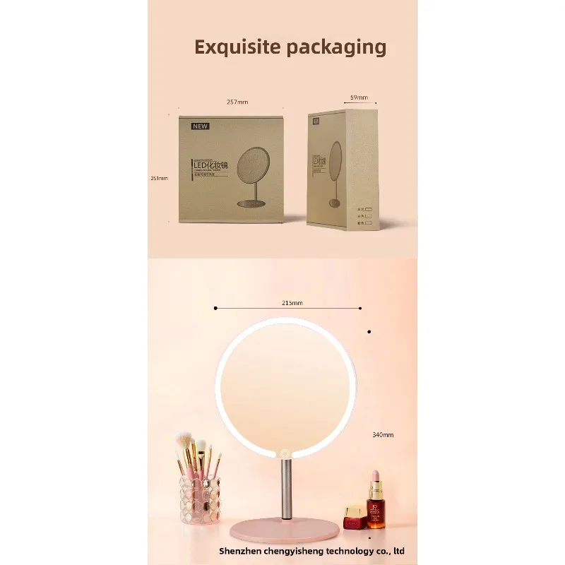 Miroir de maquillage circulaire à LED, miroir de bureau avec petit miroir cadeau en métal léger, nouvelle collection 2025Miroir de maquillage circulaire à LED, miroir de bureau avec petit miroir cadeau en métal léger, nouvelle collection 2025