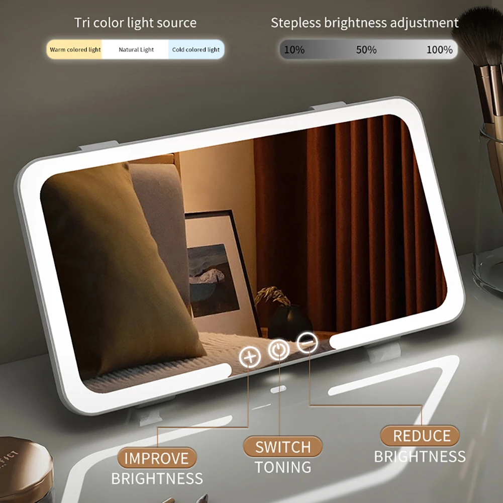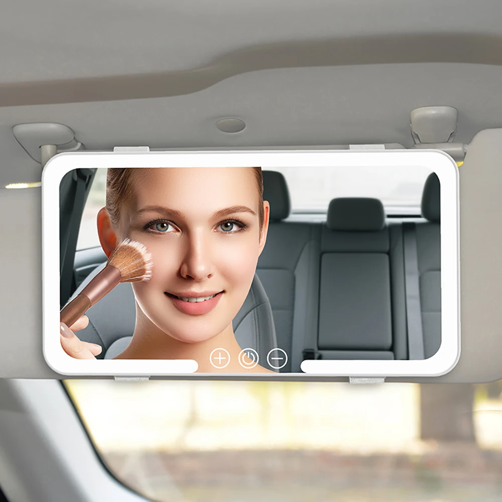 Car Makeup Mirror Sun Visor with 3 Colors LED Dimmable Makup Mirrors Touch Screen Car Interior Cosmetic Light Electric Interior