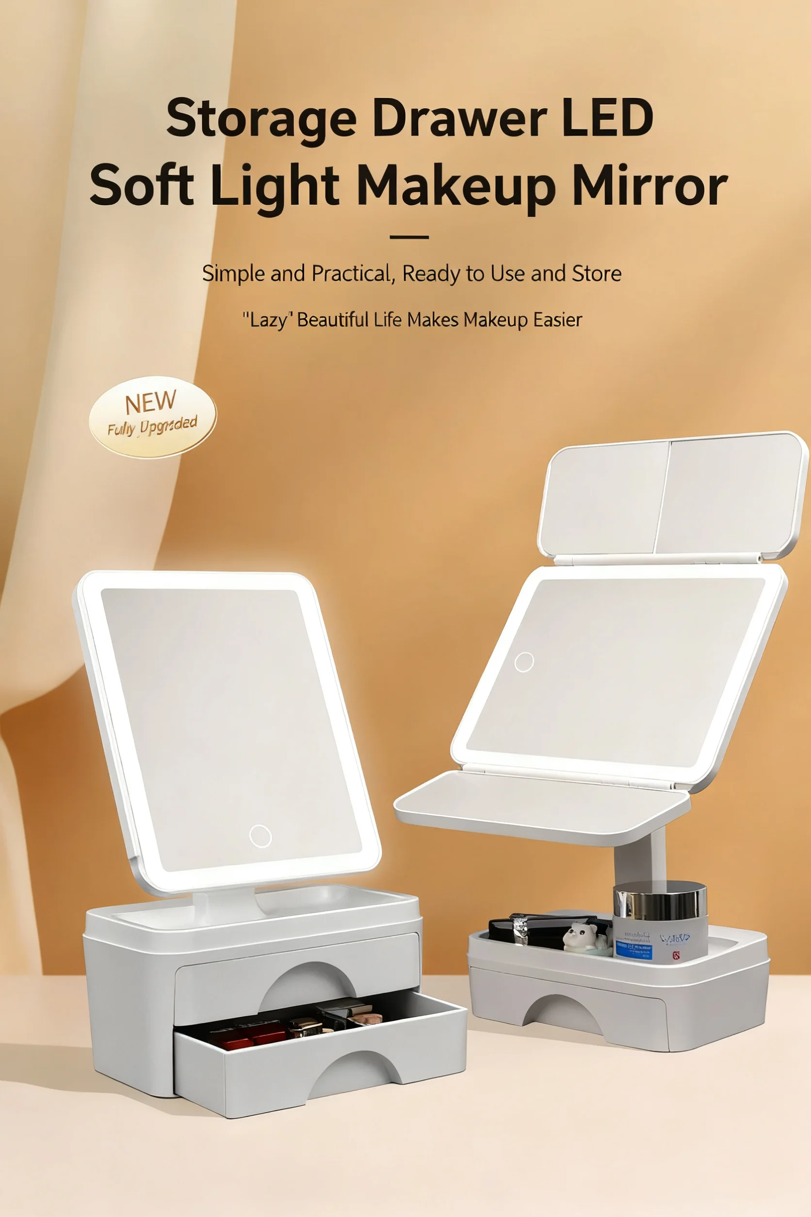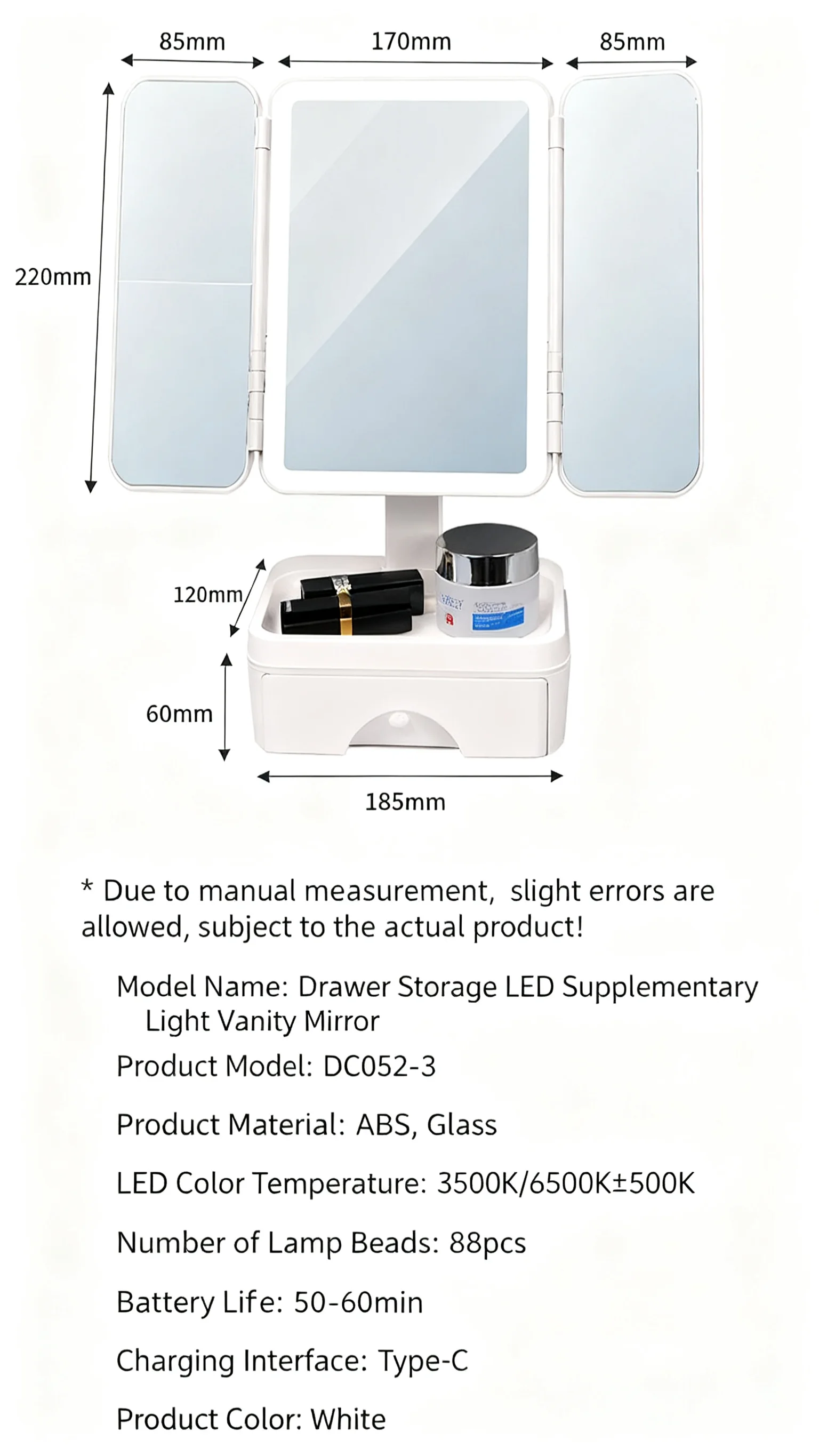 • Product Name: Drawer Storage LED Supplementary Light Vanity Mirror (also named: Storage Drawer LED Soft Light Makeup Mirror / Drawer Storage Box Makeup Mirror)