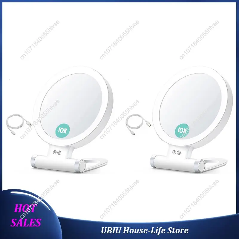 Miroir de maquillage grossissant 10X, 2 pièces, avec lumières et grossissement, miroir LED de bureau 3 couleurs et miroir de vanité pour voyage, meilleur Se