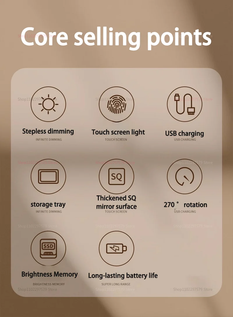 Illuminez votre espace avec un éclairage LED polyvalent et portable – Parfait pour les activités de bureau, de plein air et de soirée • Comprend 3 modes de couleur réglables (froid, naturel, chaud) avec une luminosité variable pour un éclairage personnalisé • 360 ° Conception rotative pour des angles de vision flexibles et un positionnement précis de l’éclairage – Idéal pour les bureaux, les miroirs de courtoisie ou le camping • La batterie rechargeable de 2 400 mAh permet une utilisation prolongée sans fil – Parfaite pour les voyages, les aventures en plein air ou l’éclairage de secours • Commandes tactiles intuitives pour un ajustement transparent de la luminosité et des modes de couleur des LED pour une utilisation sans effort à portée de main • Esthétique moderne avec une finition blanche élégante et un cadre rectangulaire arroné pour complé