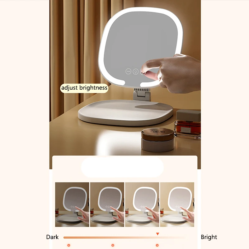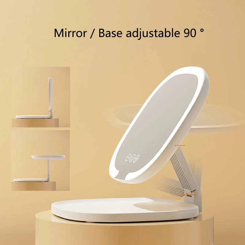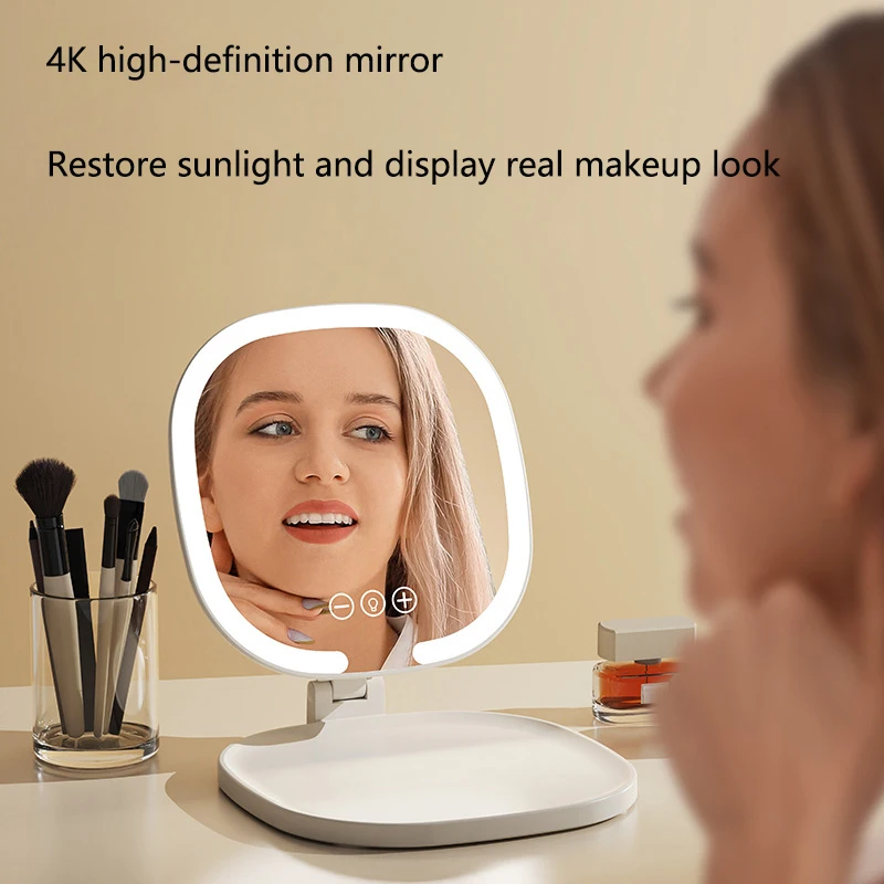 Miroir de maquillage pliable 4K HD, lumière LED tricolore, miroir de vanité de bureau pour chambre à coucher, contrôle Intelligent, miroirs cosmétiques réglables