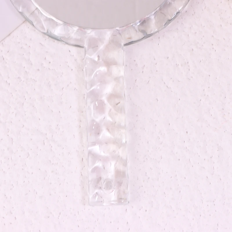 2.Conception unique : le miroir de maquillage adopte une conception de poignée transparente ondulée, qui établit un équilibre parfait entre praticité et beauté.Il est non seulement facile à tenir, mais son design transparent ondulé ajoute une touche de mode et d’élégance.