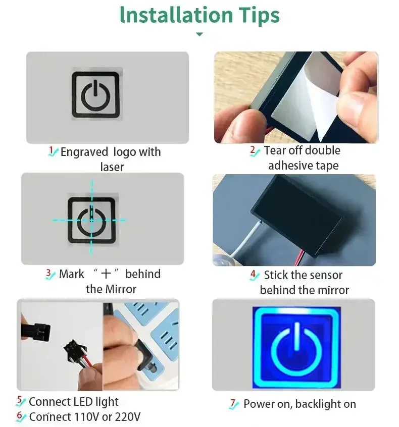 DC12V 3A interrupteur de miroir de salle de bains capteur de commutateur tactile pour phare de miroir de lumière LED bicolore