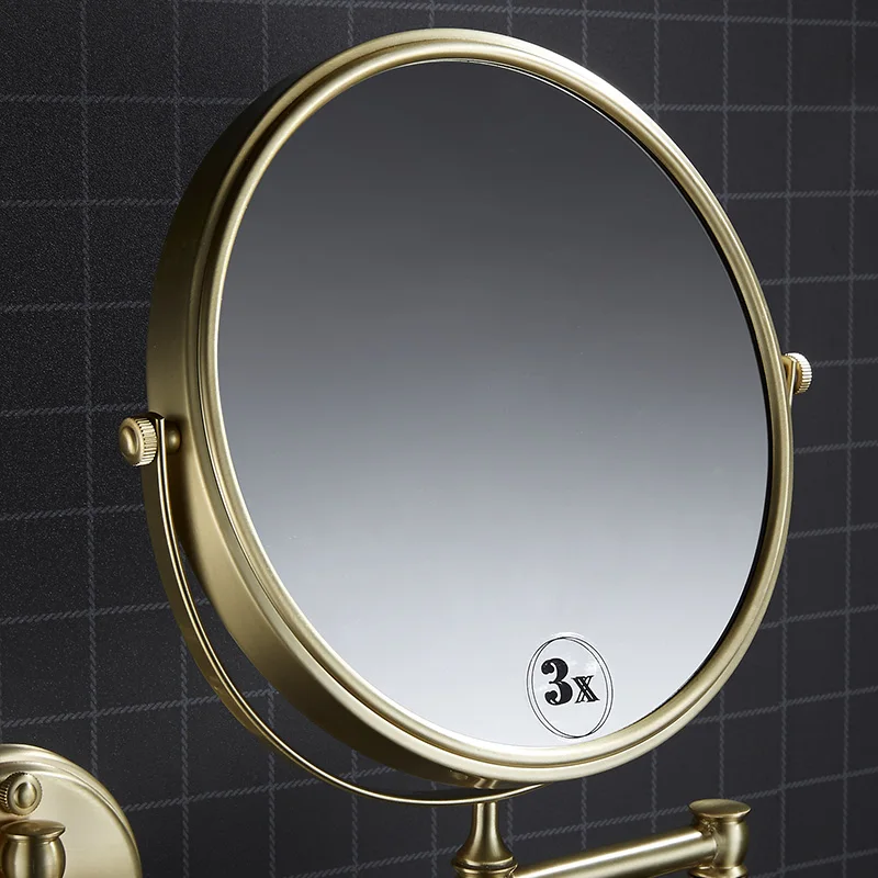 Miroir de salle de bains rond en or brossé, miroir LED mural, maquillage, loupe 1x3x, miroir de rasage rotatif Double face