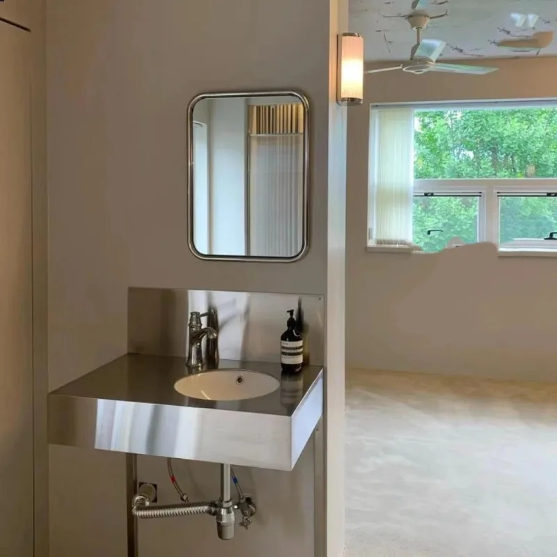 Miroir de salle de bains en acier inoxydable, petit cadre en métal moderne, miroir de maquillage Portable, tenture murale Spiegel, décoration de la maison
