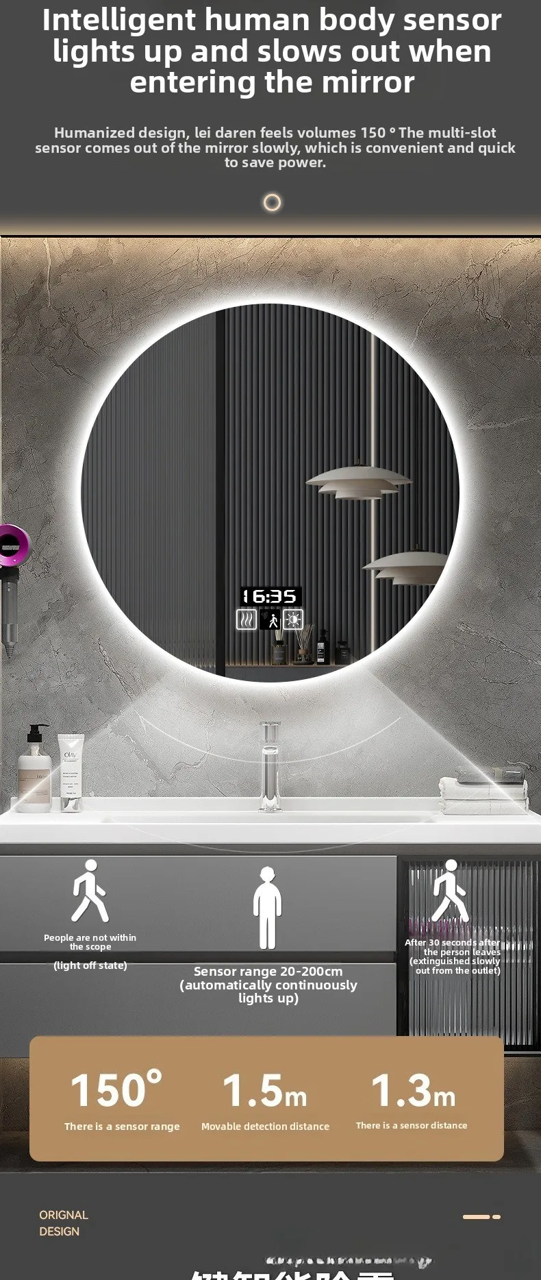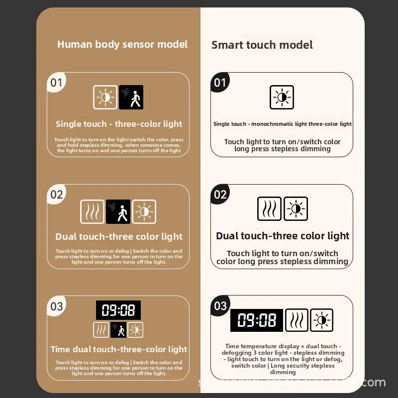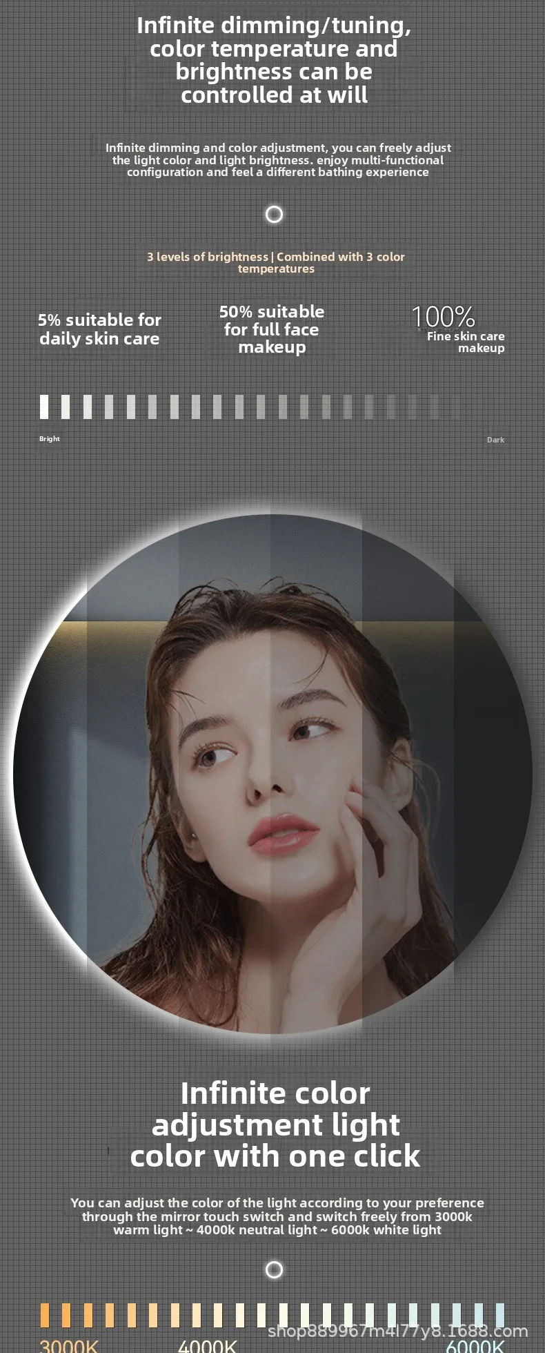- Forme de miroir: Rond