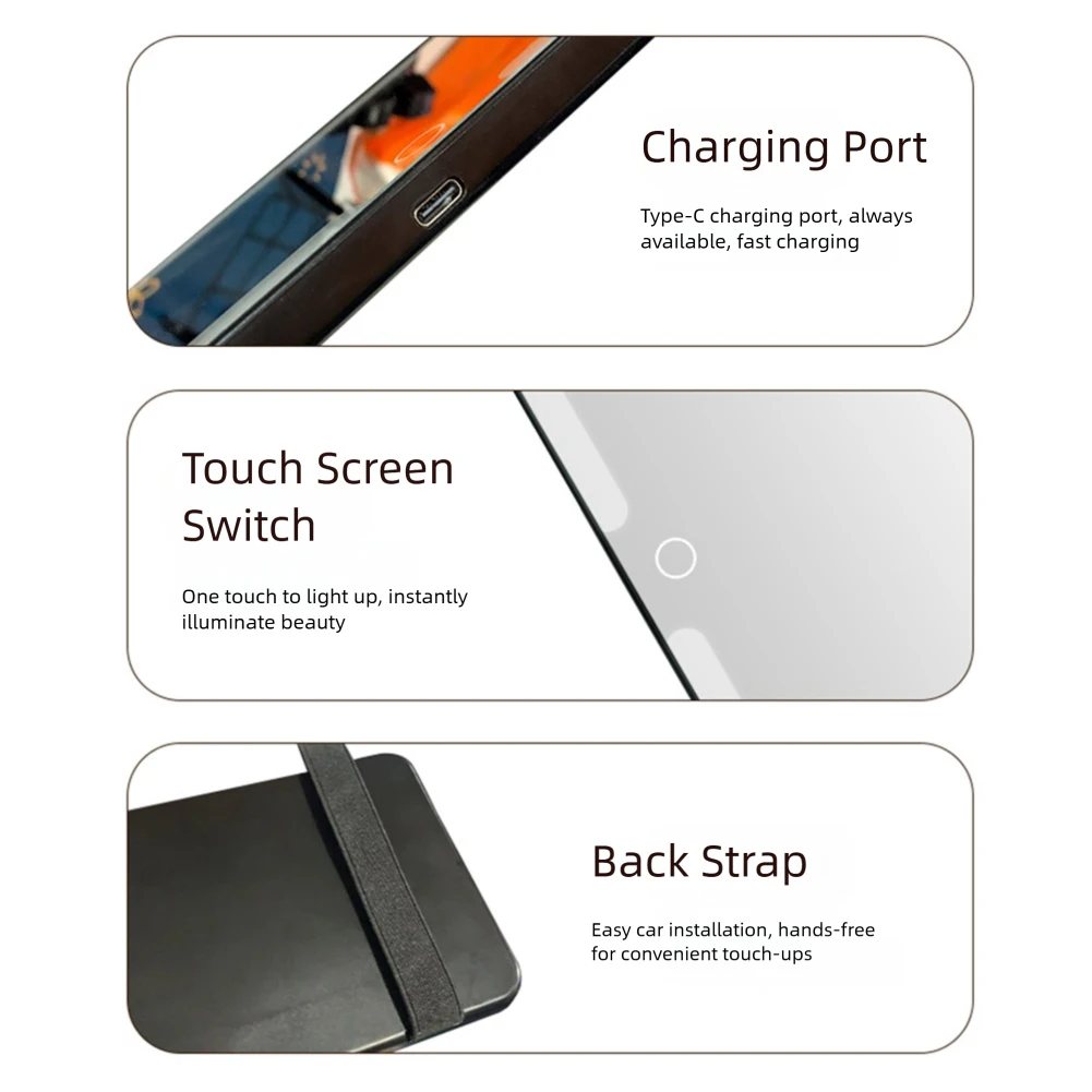 Conception rechargeable par USB : batterie au lithium rechargeable intégrée de 1 200 mAh.Vous pouvez charger le miroir cosmétique via la voiture, la prise, l’ordinateur ou l’alimentation mobile, libre d’utiliser le miroir de courtoisie avec des lumières n’importe où et à tout moment.