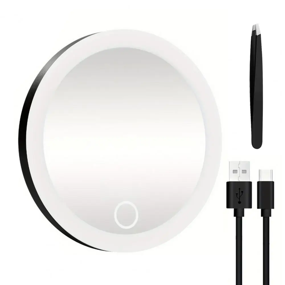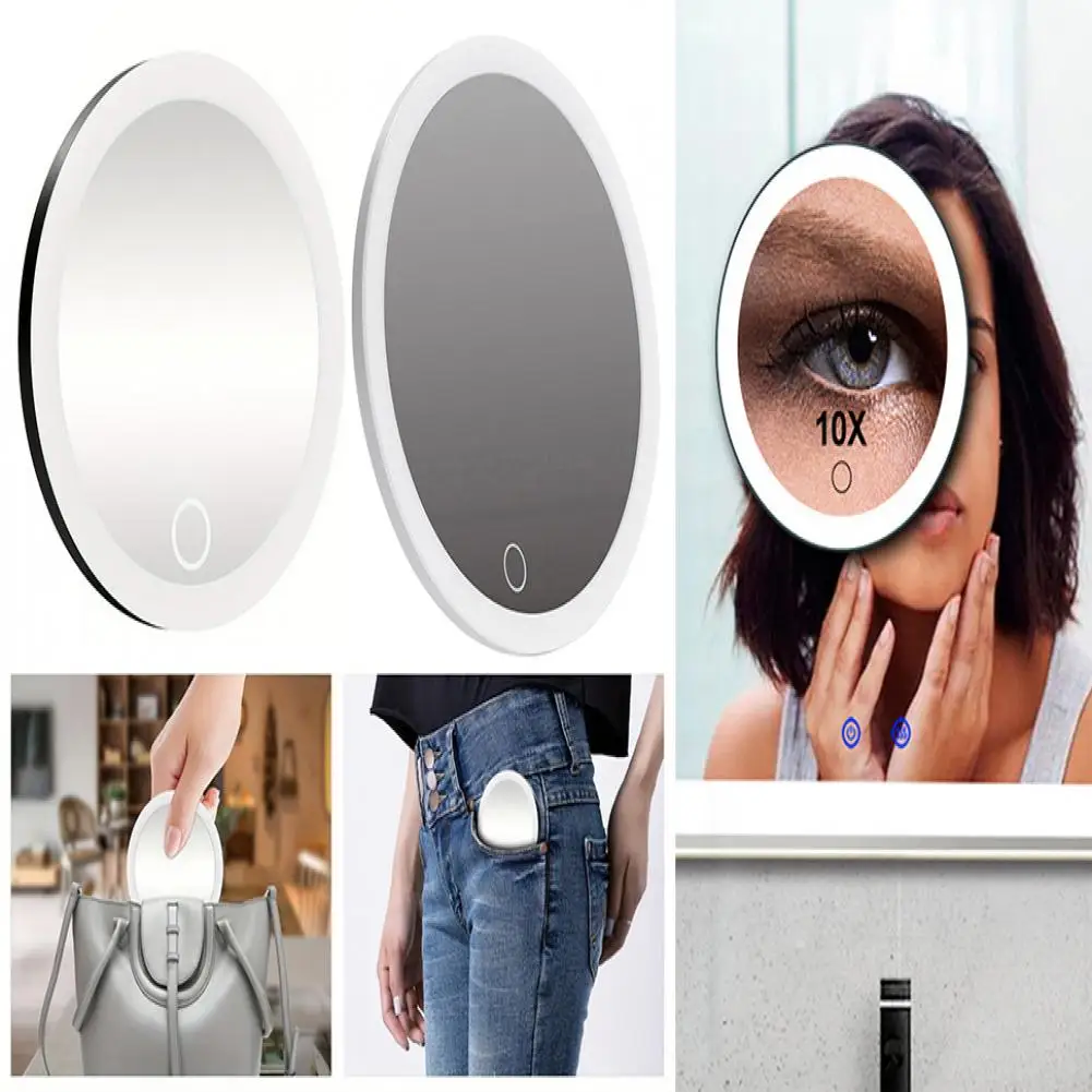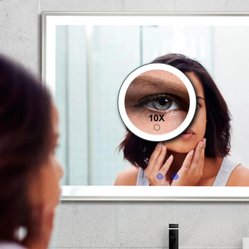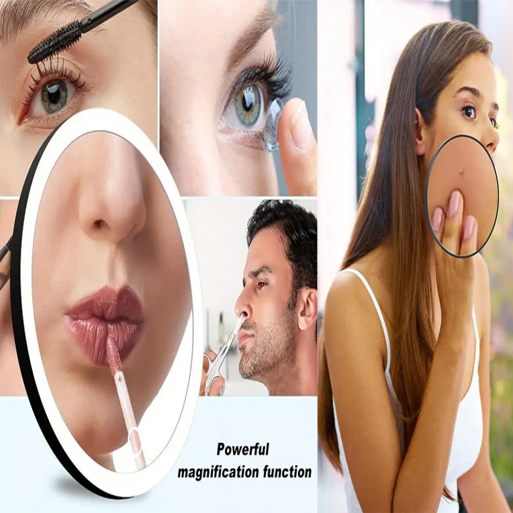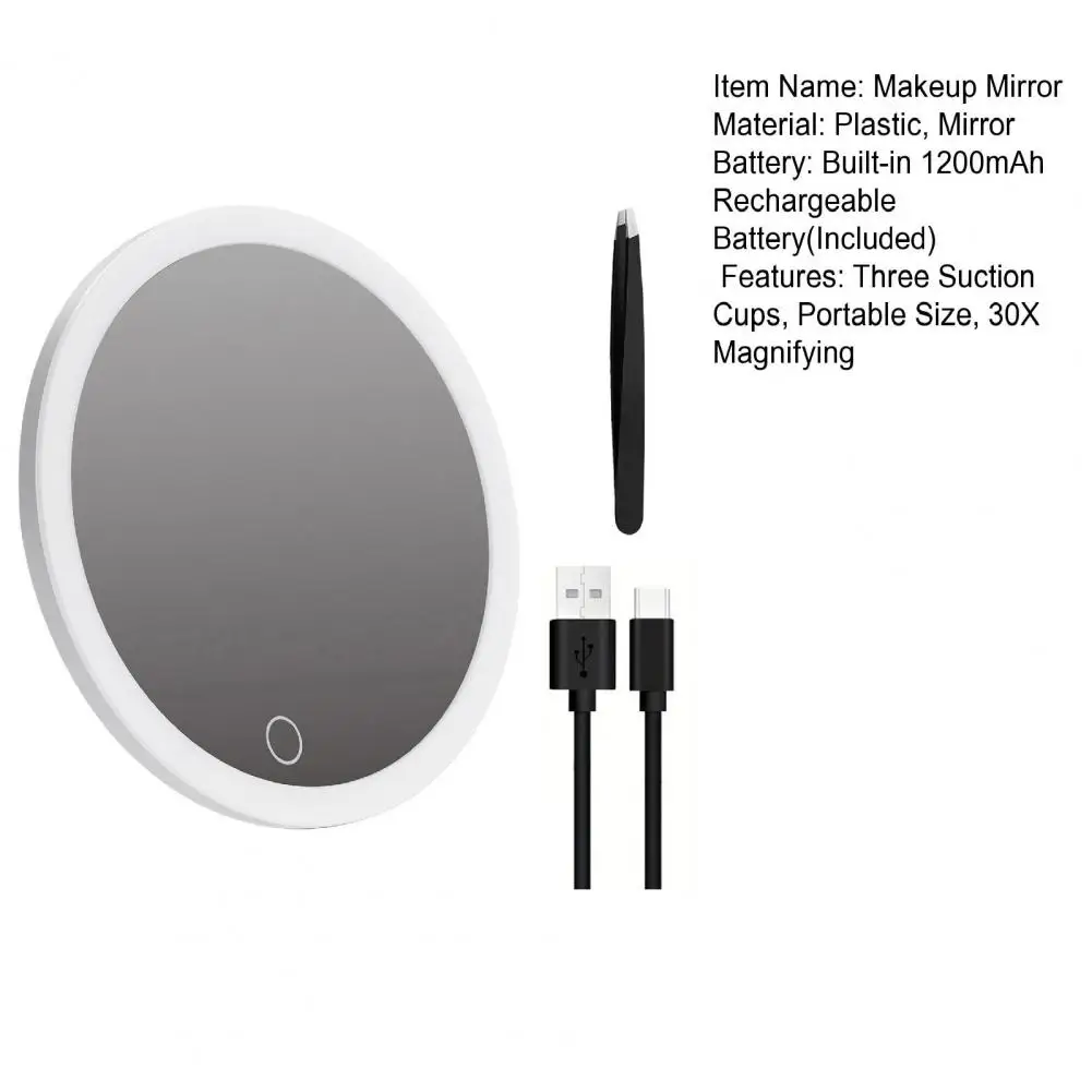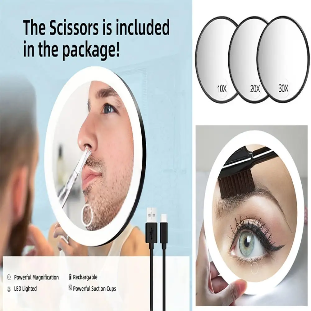 Miroir grossissant 10CM 30X avec pince à épiler, miroir de maquillage LED de voyage Portable avec 3 ventouses, miroir de vanité agrandi rechargeable à intensité variable