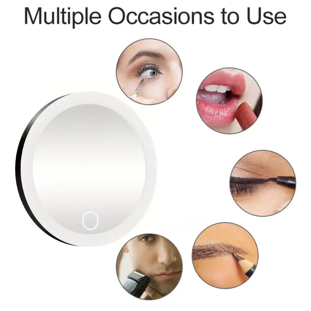 Luminosité réglable : doté d’un interrupteur à bouton tactile, ce miroir grossissant de maquillage LED vous permet de régler facilement les niveaux de luminosité.Appuyez simplement et maintenez pour obtenir l’éclairage souhaité, ce qui le rend idéal pour des tâches de maquillage précises à la maison ou en voyage.