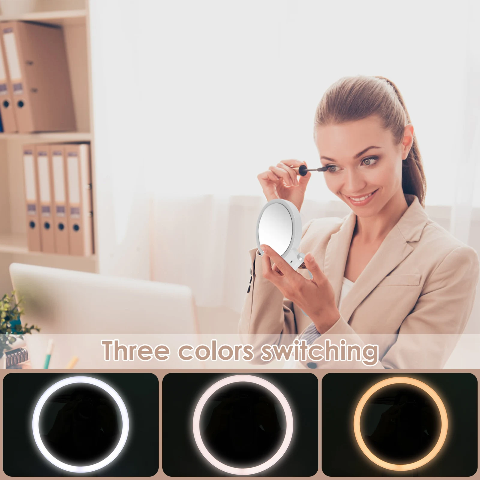 Portabilité : ce miroir grossissant a un design pliable, qui peut être facilement posé dans votre sac à main ou un sac à dos pour le transport en déplacement.Il a une batterie intégrée de 1000 mAh, utilisez uniquement le câble de chargement inclus pour une charge entièrement pour un usage quotidien.Il convient aux voyages, aux voyages professionnels ou à la maison