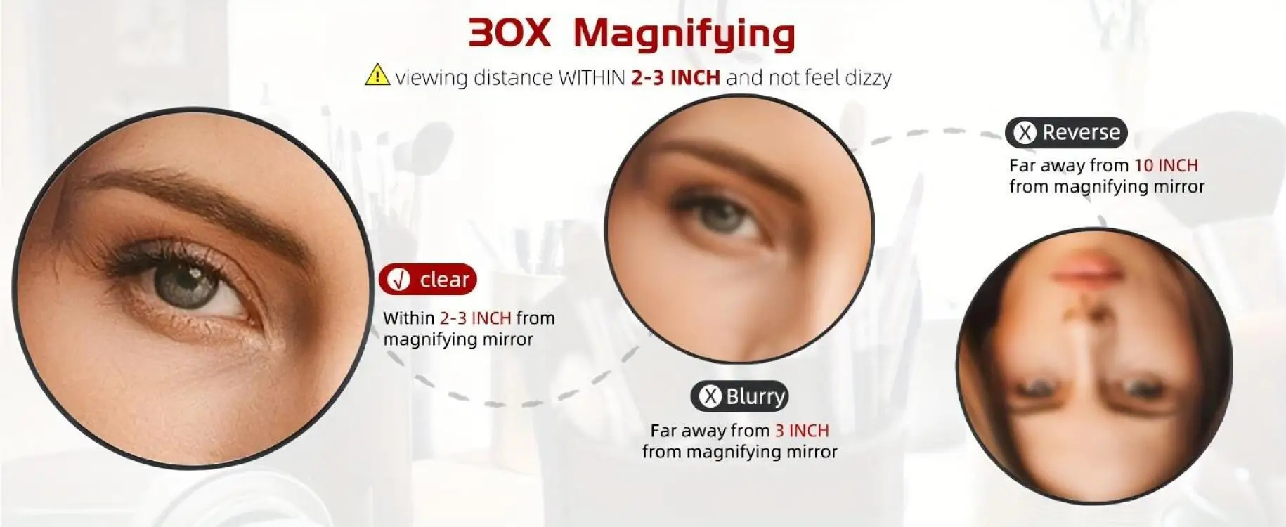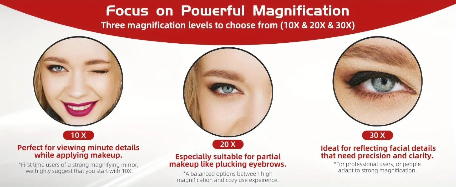 Miroir grossissant Portable 45 pouces 114CM 20x 30x, miroir concave, miroir de salle de bain à trois absorbants pour une organisation facile du maquillageMiroir grossissant Portable 45 pouces 114CM 20x 30x, miroir concave, miroir de salle de bain à trois absorbants pour une organisation facile du maquillage