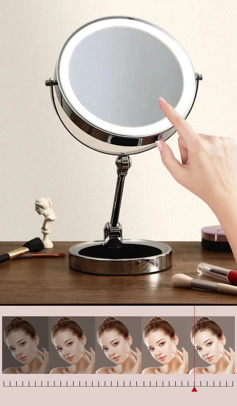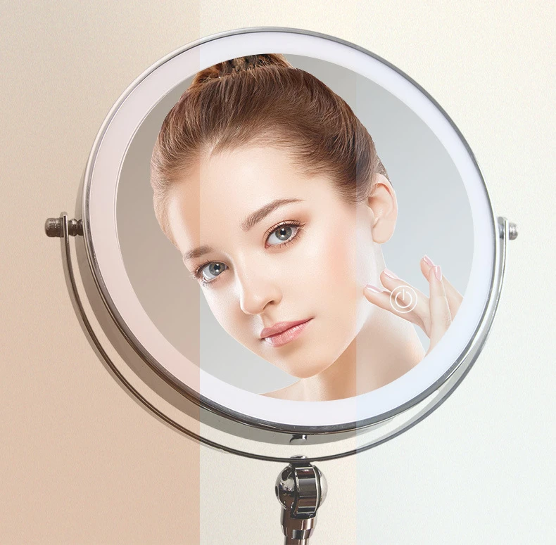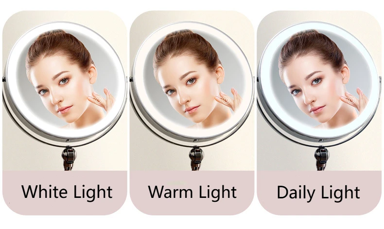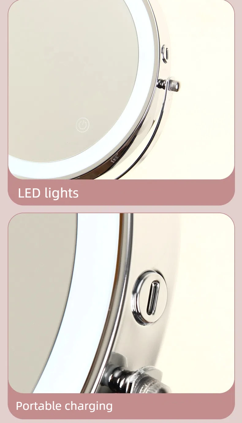 Miroir grossissant professionnel double face avec lumière LED, grossissement 10X, rotation à 360 °, 8 pouces, miroir cosmétique de bureau, maquillage
