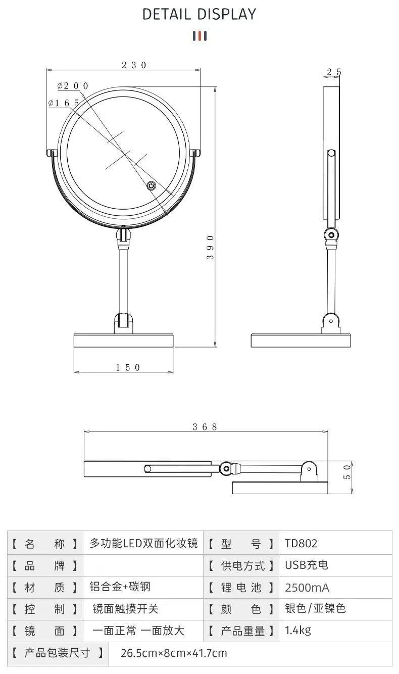 Miroir double face de haute qualité, meilleur cadeau pour vous-même ou vos amies.