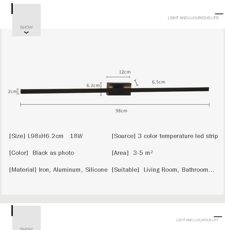 Taille : Longueur 98 * Largeur 6,5 * Hauteur 6,5 cm 18W