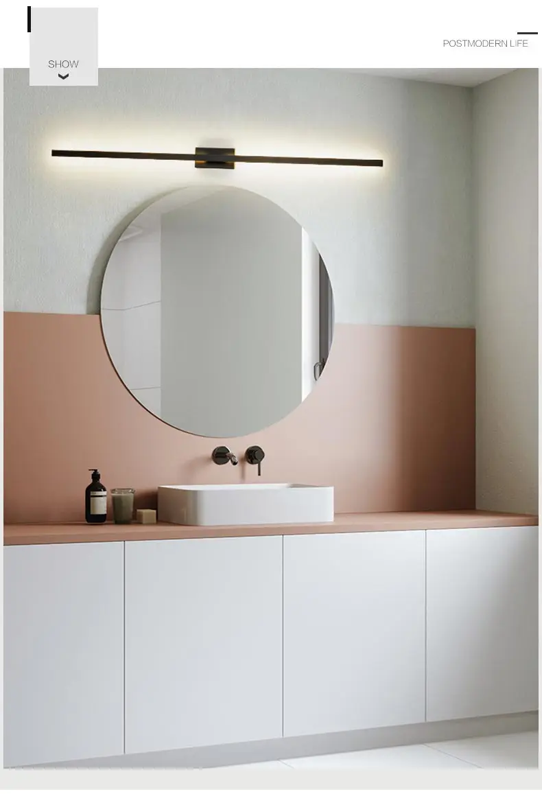Miroir moderne lumière LED chambre chevet cuisine étude salon décor maison applique en métal noir applique rotative lampara