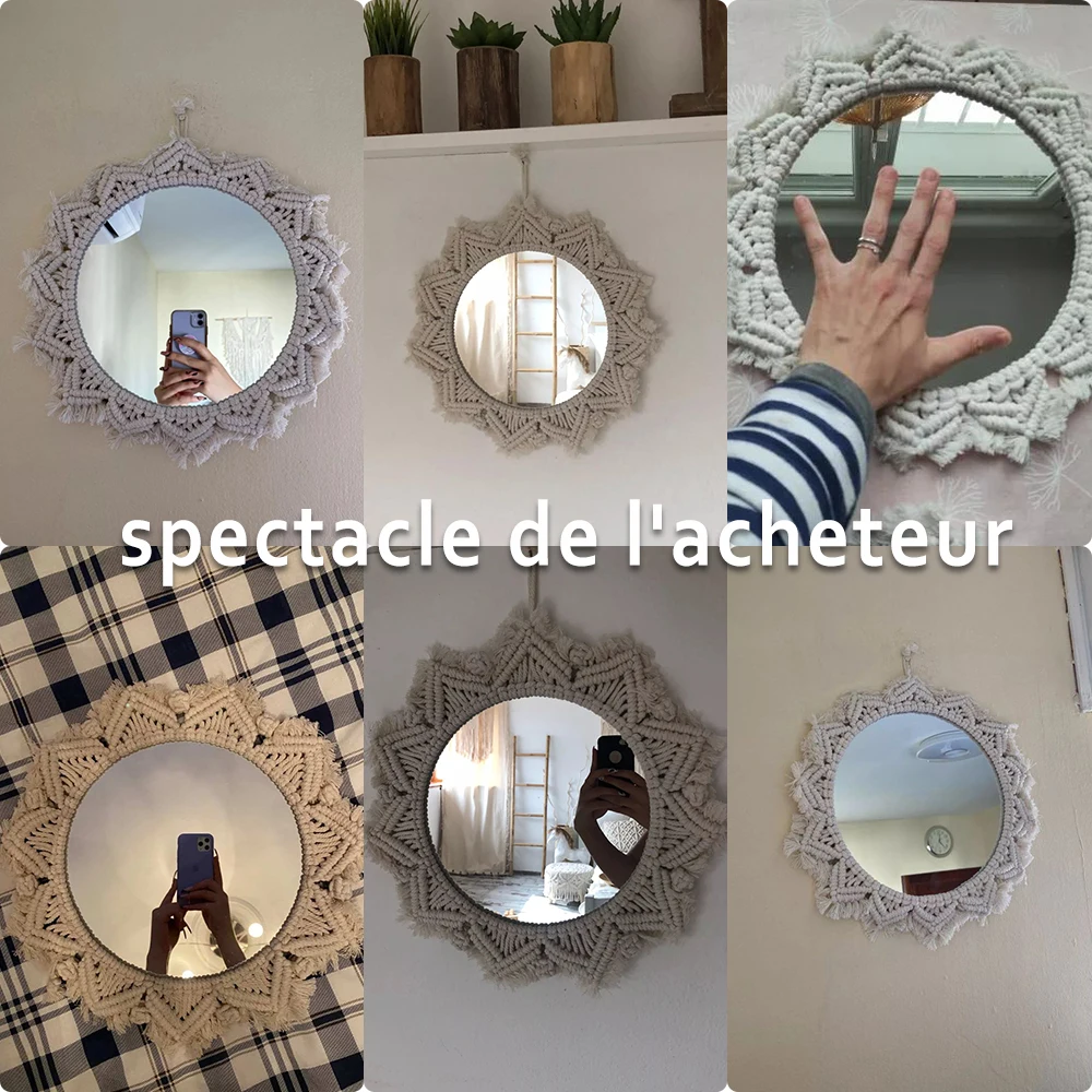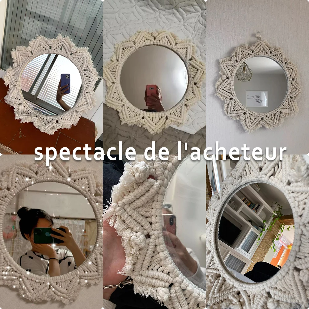 Miroir mural suspendu avec frange en macramé, rond, style Boho, décoration artistique pour appartement, salon, chambre à coucher