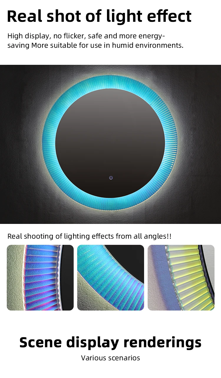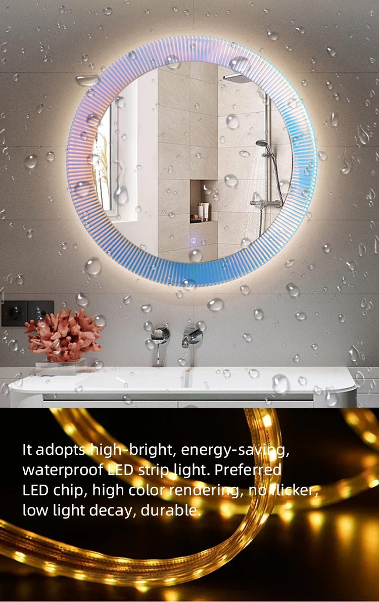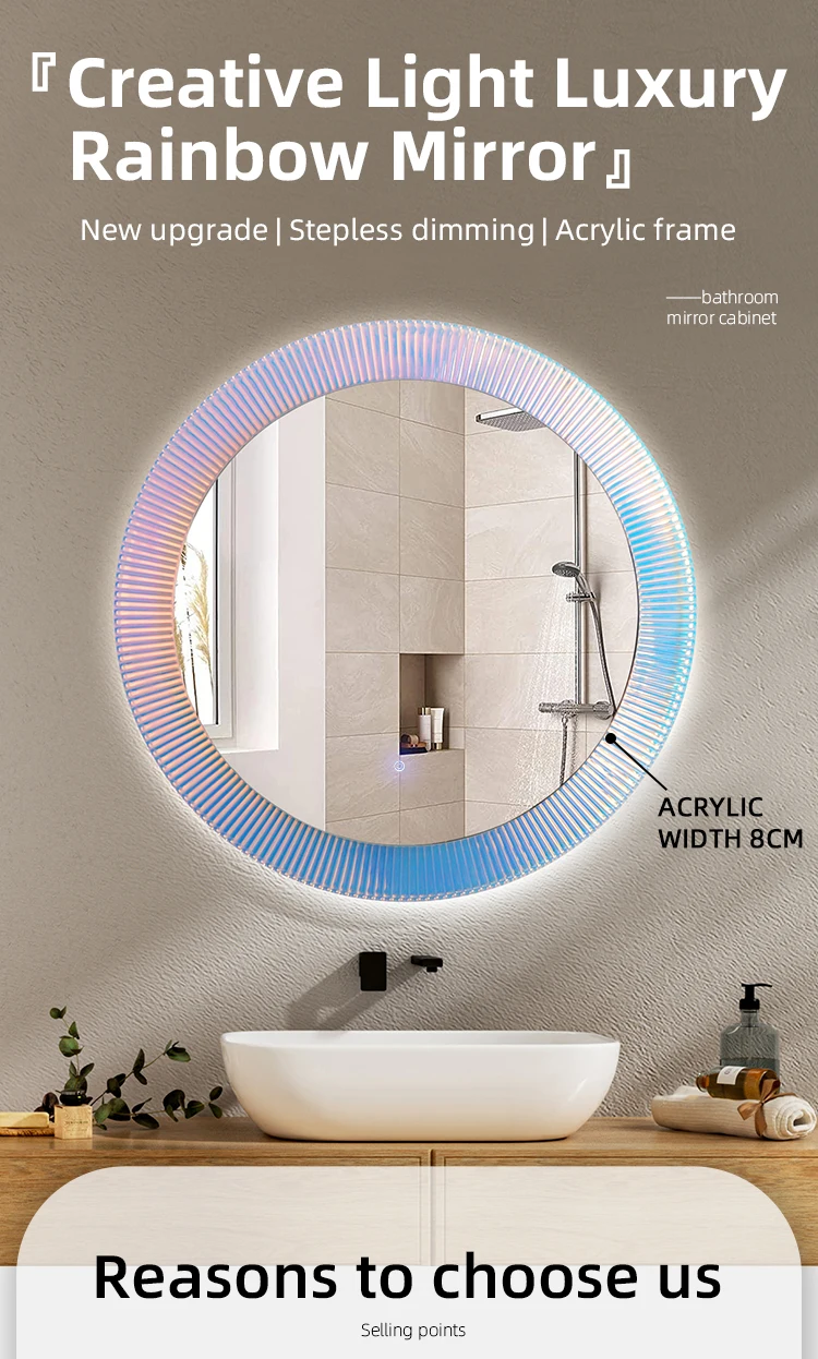 Miroir de salle de bains Led arc-en-ciel, fabricants de miroirs de salle de bains, miroir de commode de vanité Led avec lumières