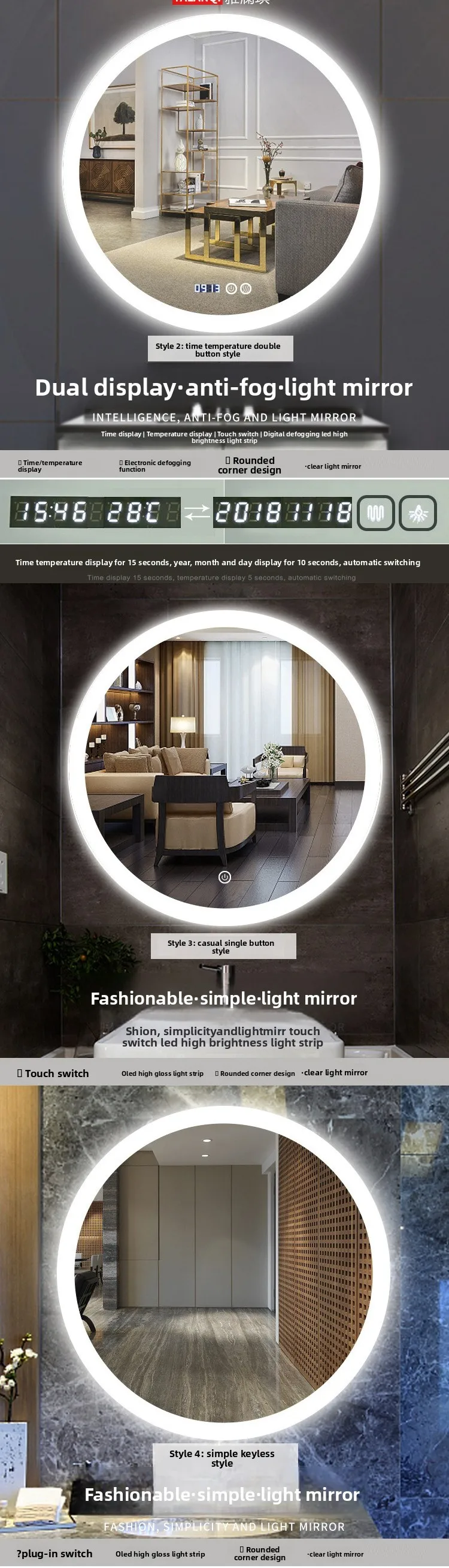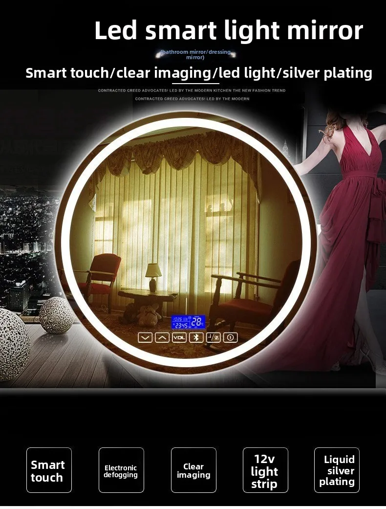 Miroir rond intelligent de 19.5 pouces, miroir de salle de bains, Anti-buée, maquillage, tenture murale, salle de bains, miroir Led avec miroir de vanité légerMiroir rond intelligent de 19.5 pouces, miroir de salle de bains, Anti-buée, maquillage, tenture murale, salle de bains, miroir Led avec miroir de vanité léger