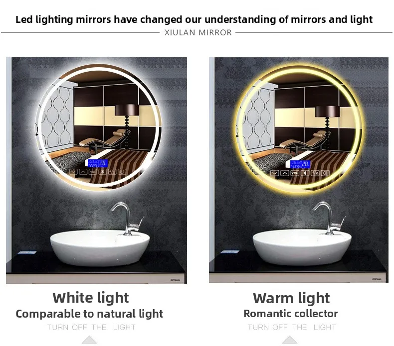 Miroir rond intelligent de 19.5 pouces, miroir de salle de bains, Anti-buée, maquillage, tenture murale, salle de bains, miroir Led avec miroir de vanité légerMiroir rond intelligent de 19.5 pouces, miroir de salle de bains, Anti-buée, maquillage, tenture murale, salle de bains, miroir Led avec miroir de vanité léger