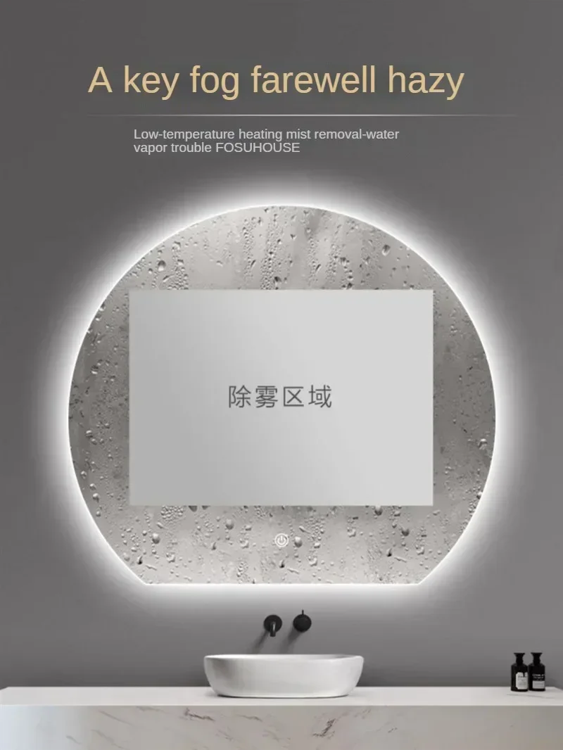 Miroirs de bain intelligents français miroir mural de salle de bain semi-circulaire avec lavabo léger désembuage miroir de salle de bain LED meubles de maison gMiroirs de bain intelligents français miroir mural de salle de bain semi-circulaire avec lavabo léger désembuage miroir de salle de bain LED meubles de maison g