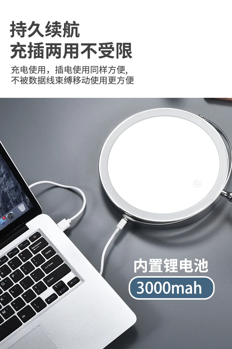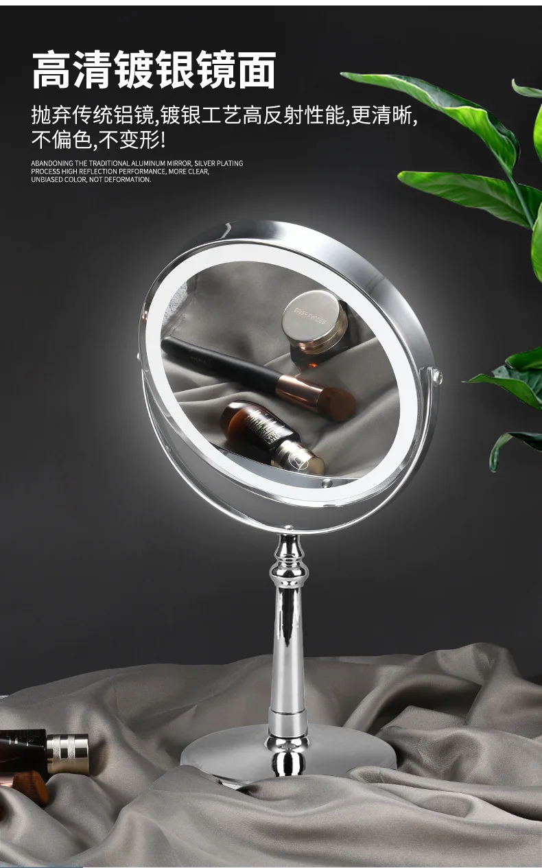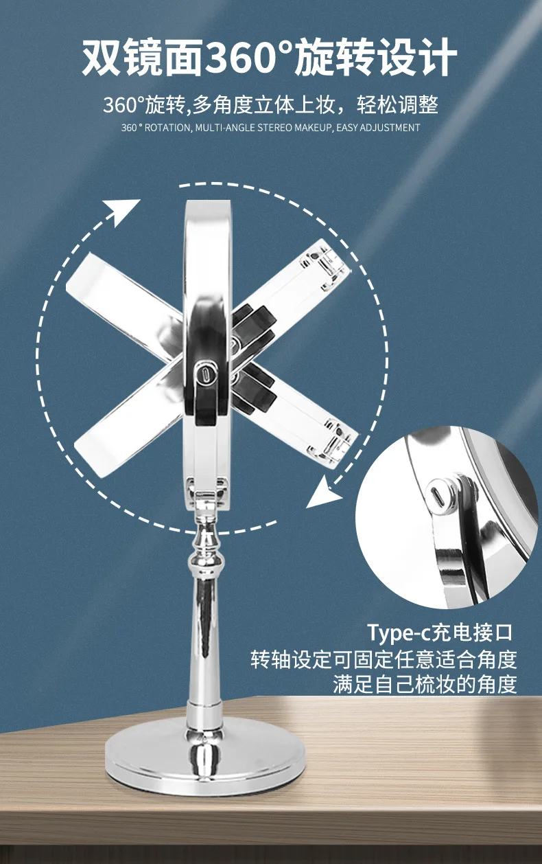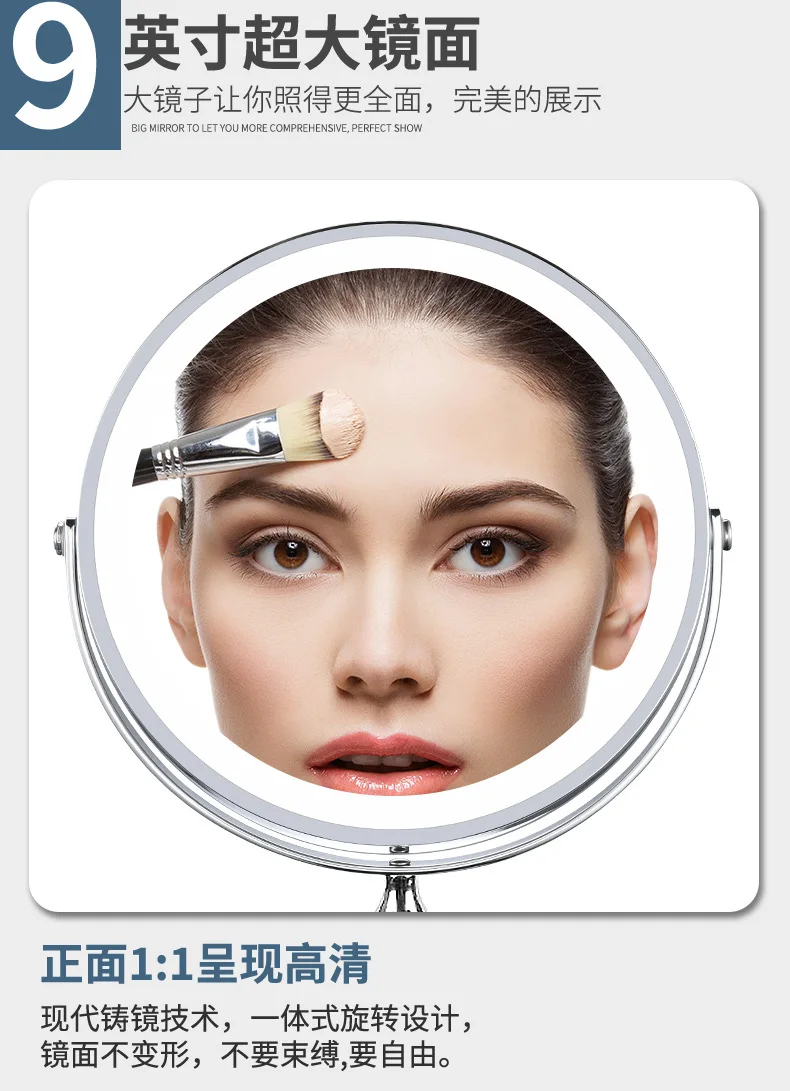 Miroir cosmétique LED double face de bureau de neuf pouces, interface type-c, batterie de grande capacité 3000mAh