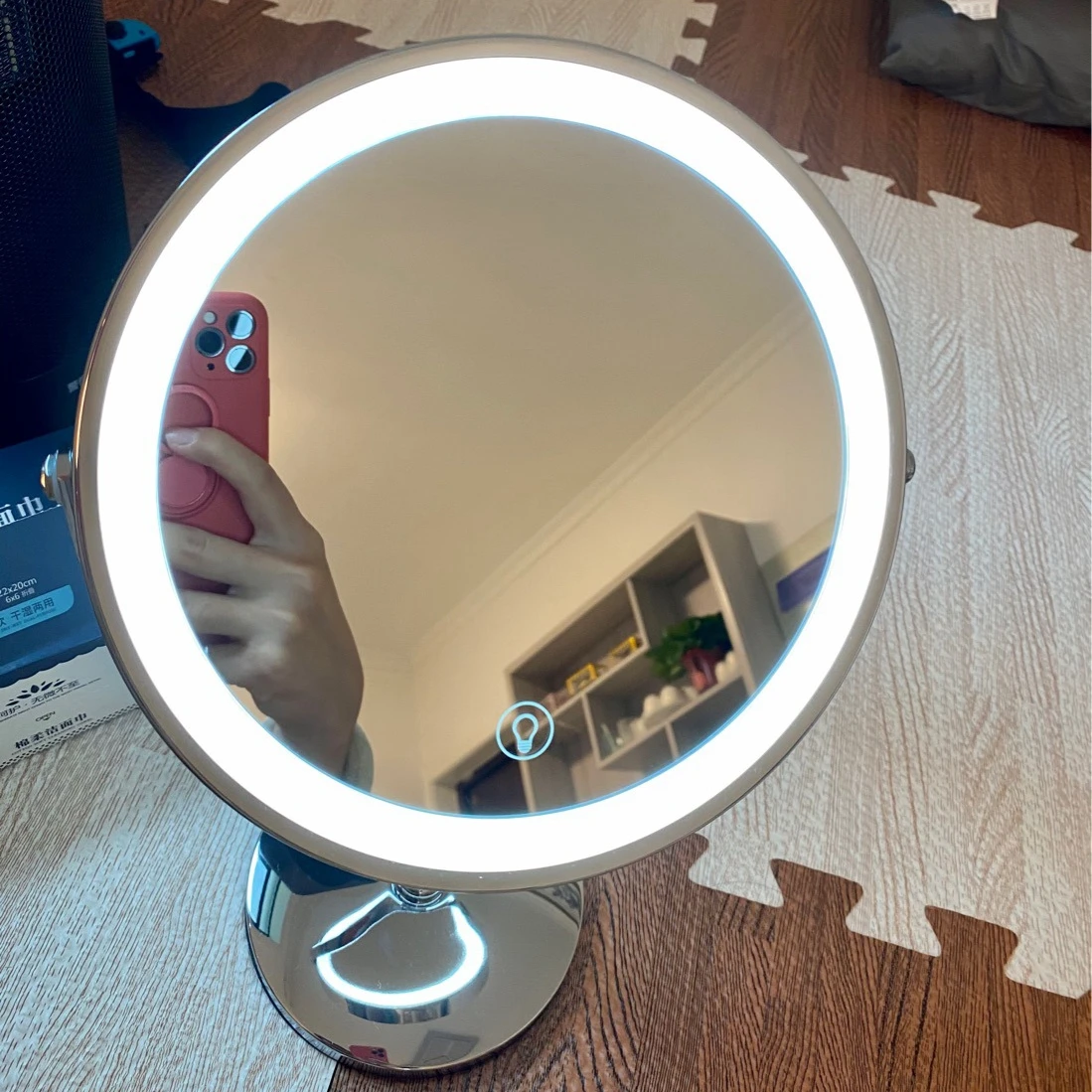 Miroirs de maquillage ronds Double face avec fonction d'amplification, miroir de bureau de 9 pouces avec lampe LED, miroir de chargement de Type C