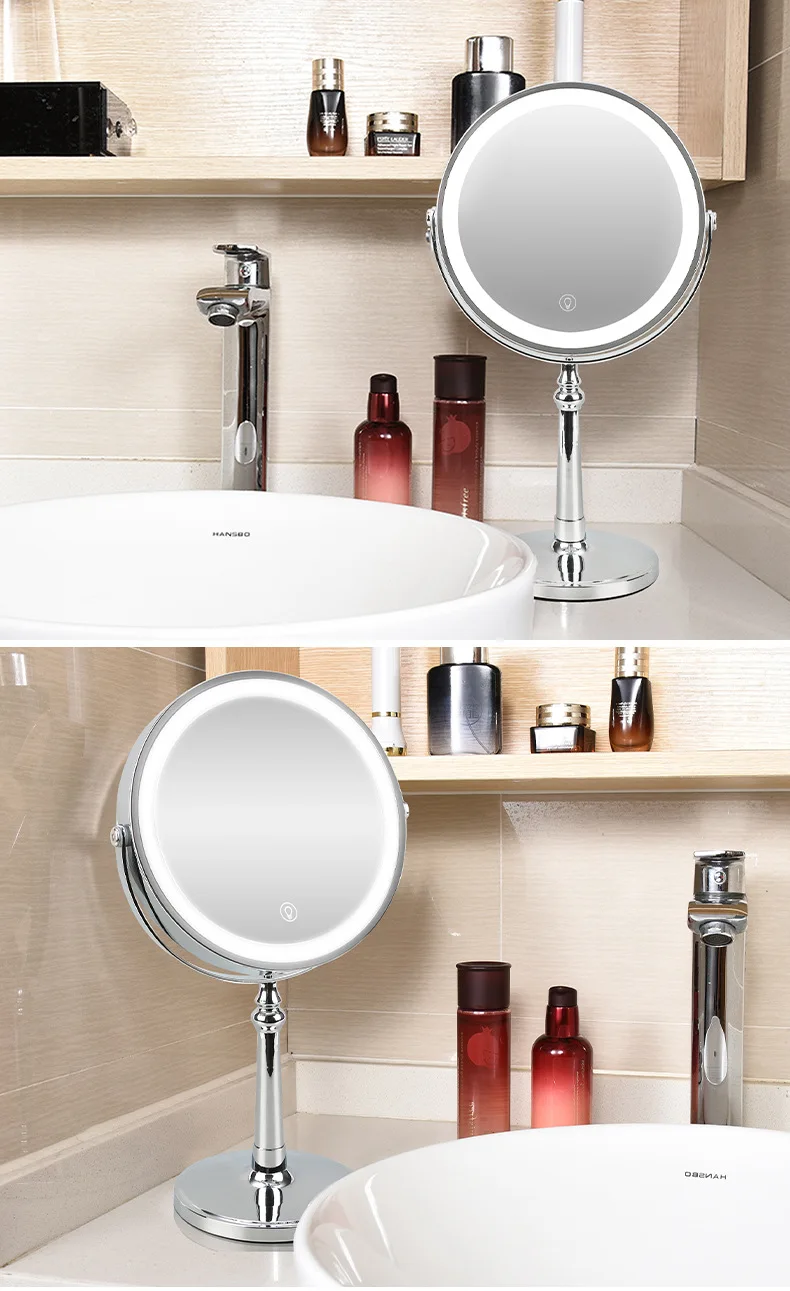 Miroirs doubles, 360 ° rotation, interrupteur à écran tactile, lumière tricolore, longue puissance de presse pour ajuster la luminosité