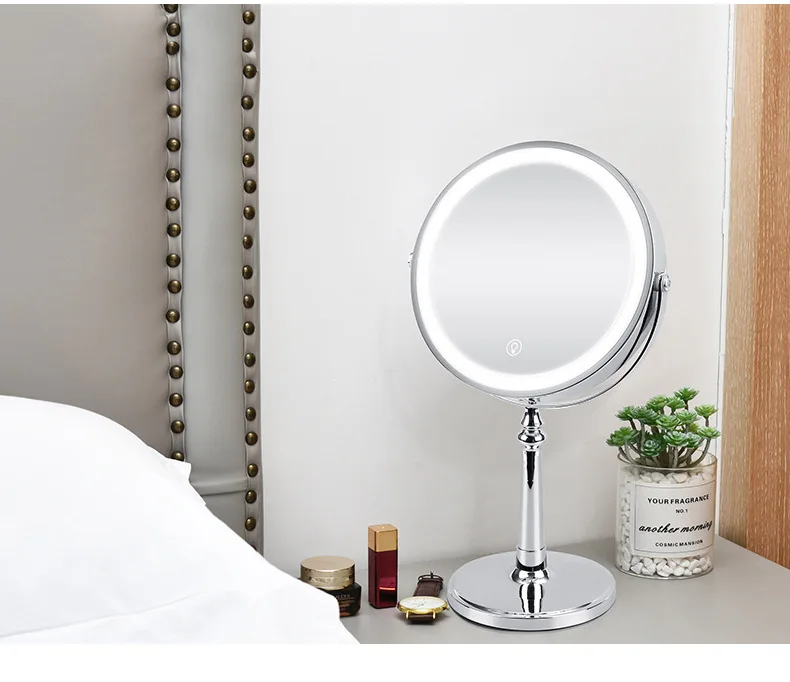 Miroirs de maquillage ronds Double face avec fonction d'amplification, miroir de bureau de 9 pouces avec lampe LED, miroir de chargement de Type C