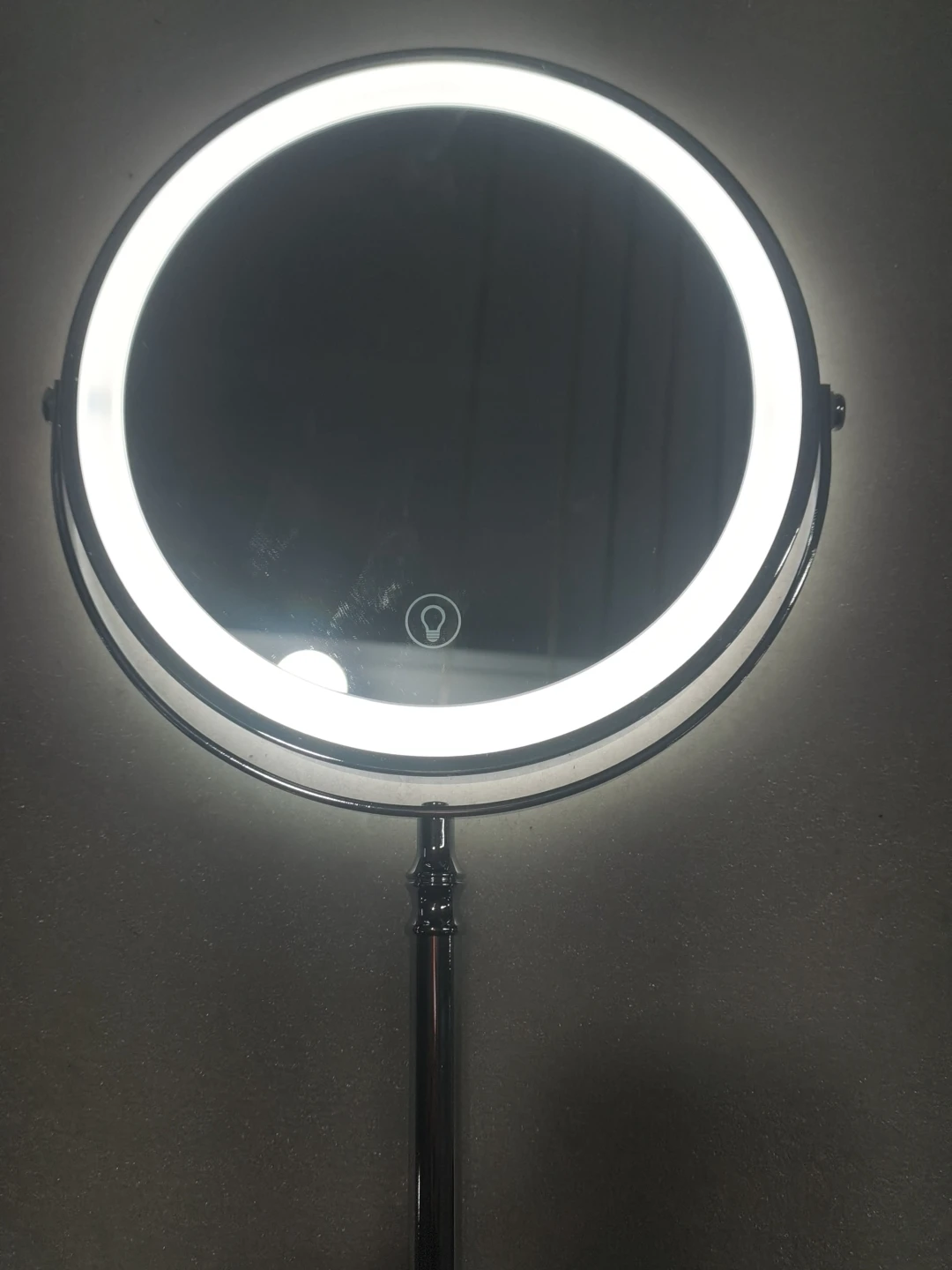 Double miroirs, 360 ° rotation, interrupteur à écran tactile, lumière tricolore, appuyez longuement sur la puissance pour régler la luminosité