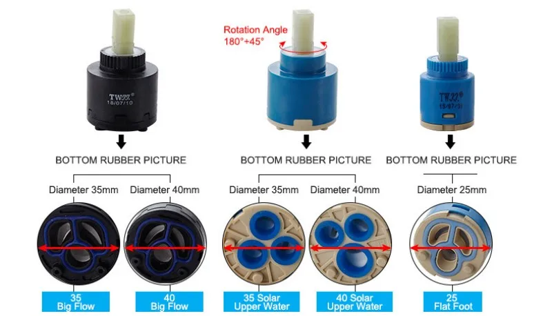 La valve à cartouche de robinet cylindrique est dotée de 3 trous au fond, une partie utile pour contrôler le débit d’eau, la direction ou la pression.