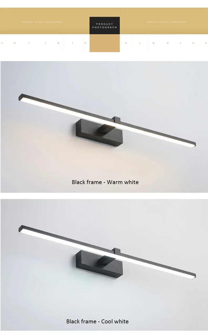 5.The product is suitable for bathroom mirror lighting, and bathroom mirror lighting, also can be applied to bedroom, living room and other different scenes.