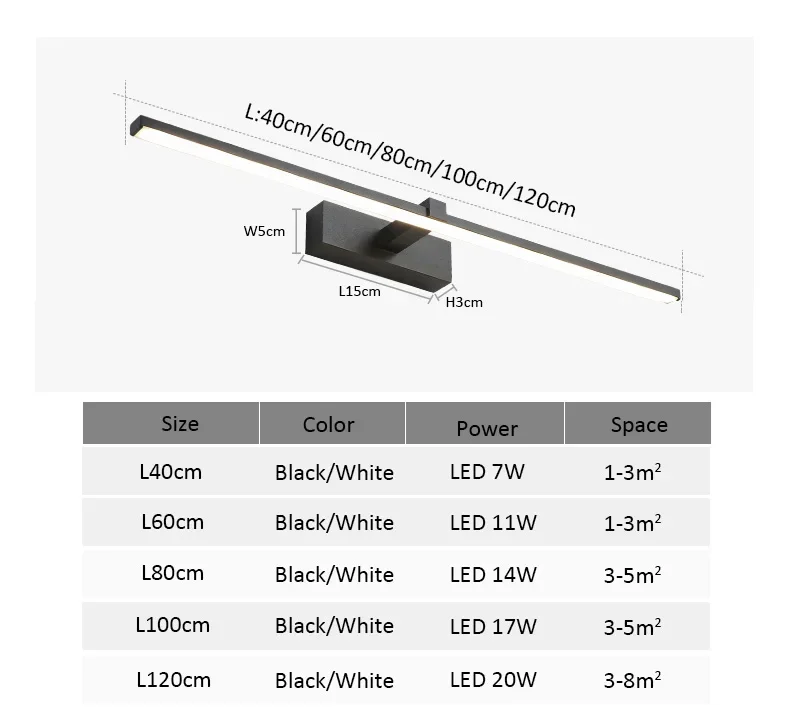 5. Le produit convient à l’éclairage des miroirs de salle de bain et à l’éclairage des miroirs de salle de bain, peut également être appliqué à la chambre à coucher, au salon et à d’autres scènes différentes.