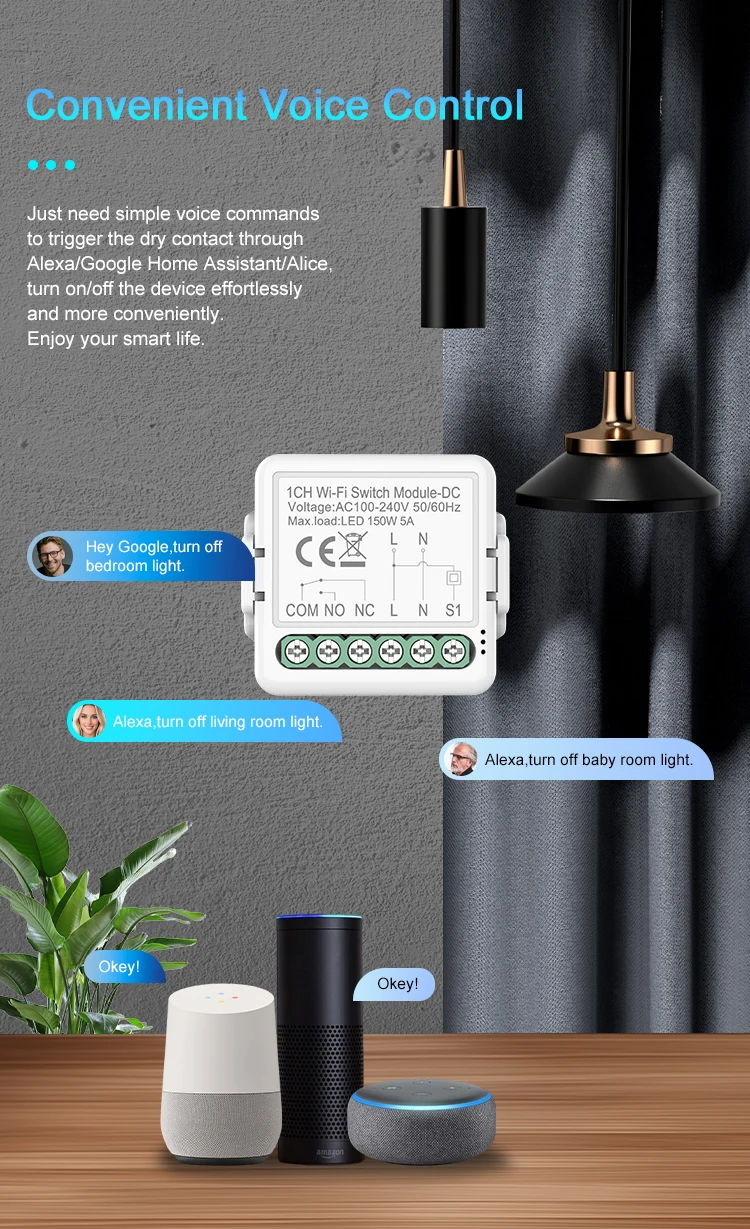 Juste besoin de commandes vocales simples pour déclencher le contact sec via Alexa/Google Home Assistant, marche/arrêt de l’appareil sans effort et plus pratique. Profitez de votre vie intelligente.