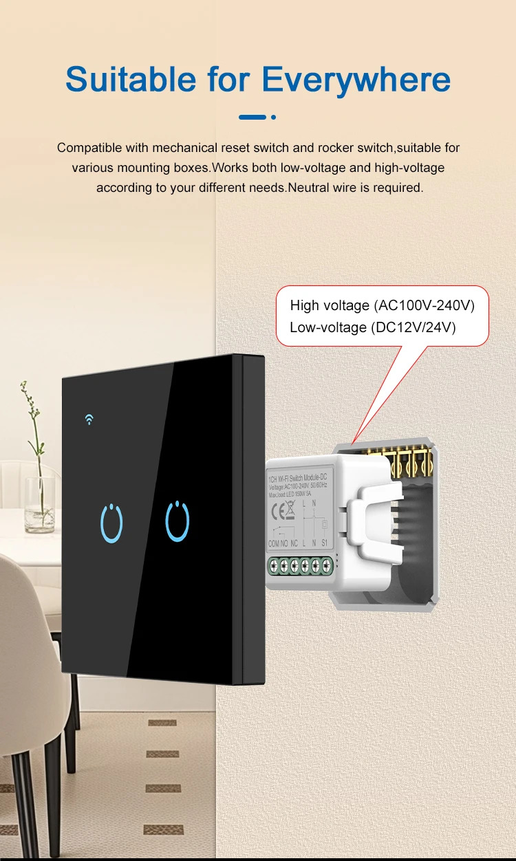Compatible avec l’interrupteur à réinitialisation mécanique et l’interrupteur à bascule, adapté à diverses boîtes de montage.