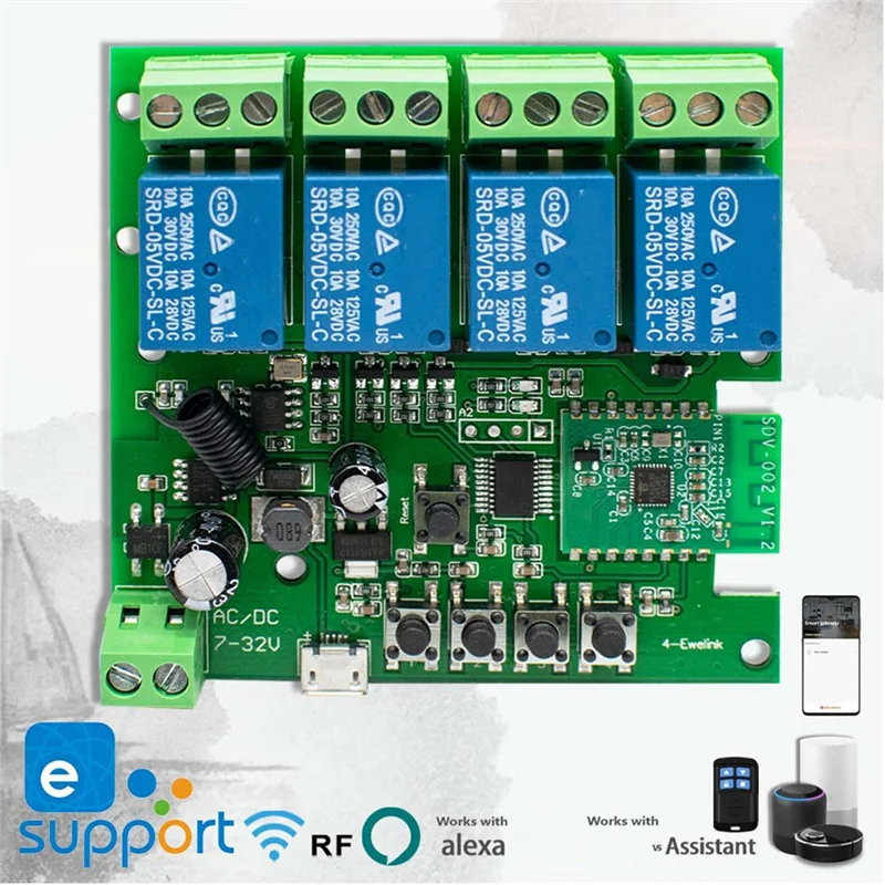 Remote ON/OFF: Turn 4 electrical devices on/off remotely from anywhere. 3 Working Modes: Switch among interlock/self-locking/inching modes.