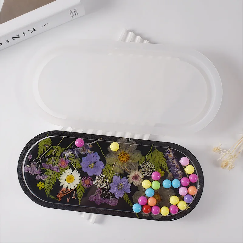 Moule ovale en résine – Plat à bijoux en cristal, boîte de rangement de cire et moules en Silicone pour artisanat du gypse
