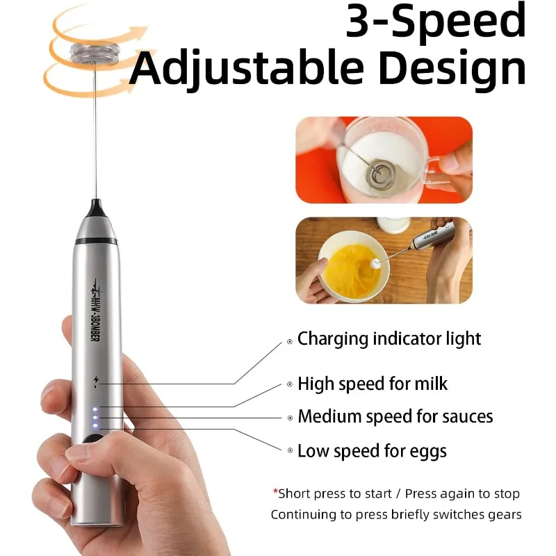 Mousseur à lait Rechargeable MHW-3BOMBER, mélangeur à café au lait portatif à 3 vitesses avec fouet en acier inoxydable, outils de cuisine portables pour la maison