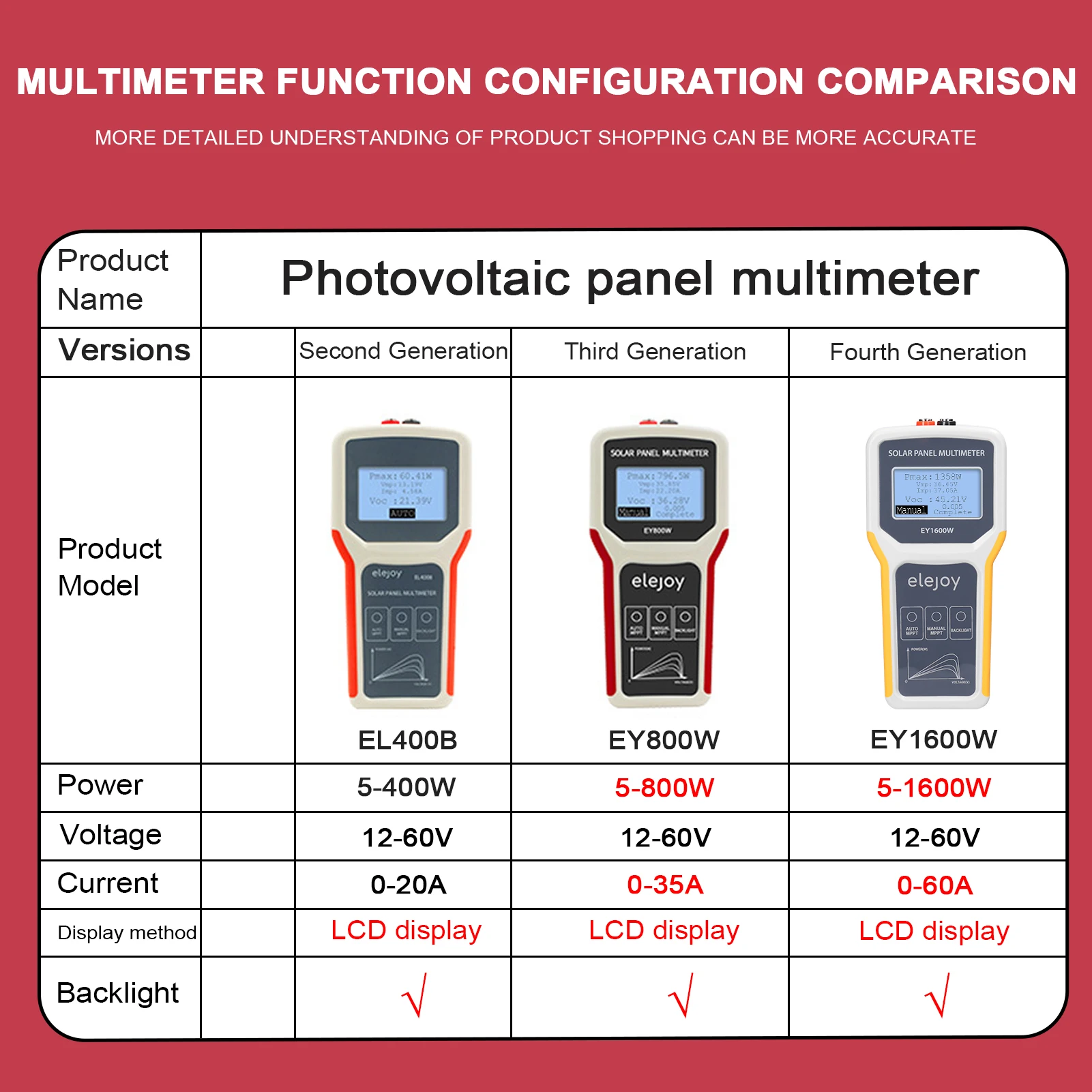 Multimètre de panneau photovoltaïque 1600W, testeur MPPT de panneau solaire, dispositif de Test de tension en Circuit ouvert, point d’alimentation maximum, tension, courant, compteur de puissance, écran LCD avec rétro-éclairage