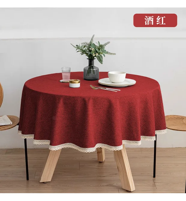 Nappe de Table ronde bordeaux, imperméable, anti-déversement, couleur unie, douce, sans plis, pour cuisine, fête, décoration de mariage