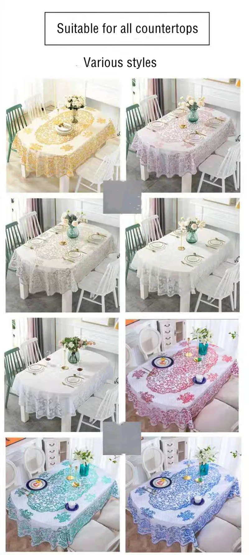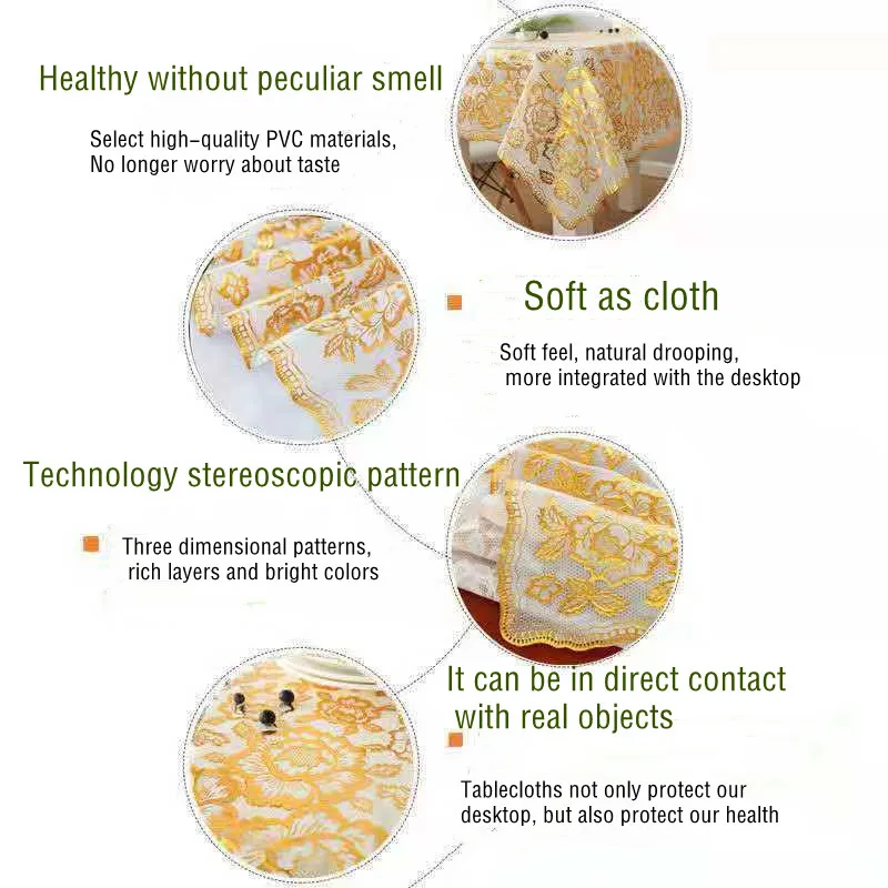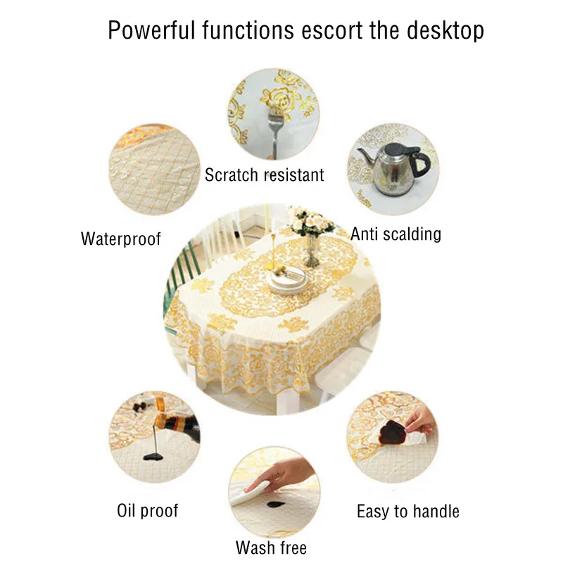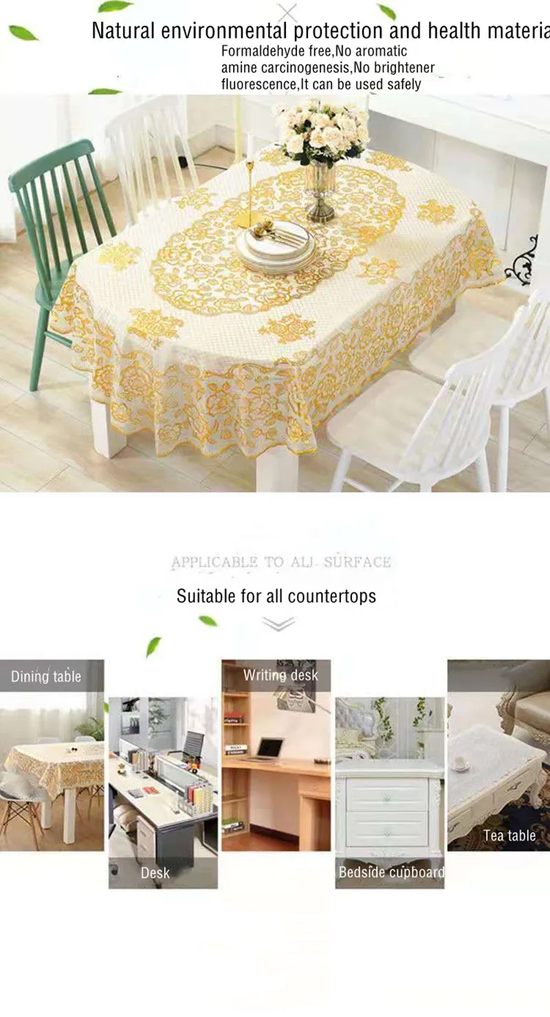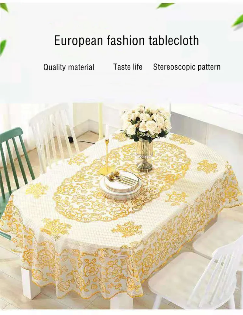 Nappe Ovale Ronde en PVC Imperméable Anti-Brûlure, Couverture de Table Décorative Brodée, Résistante à l’Huile, sans LavageNappe Ovale Ronde en PVC Imperméable Anti-Brûlure, Couverture de Table Décorative Brodée, Résistante à l’Huile, sans Lavage