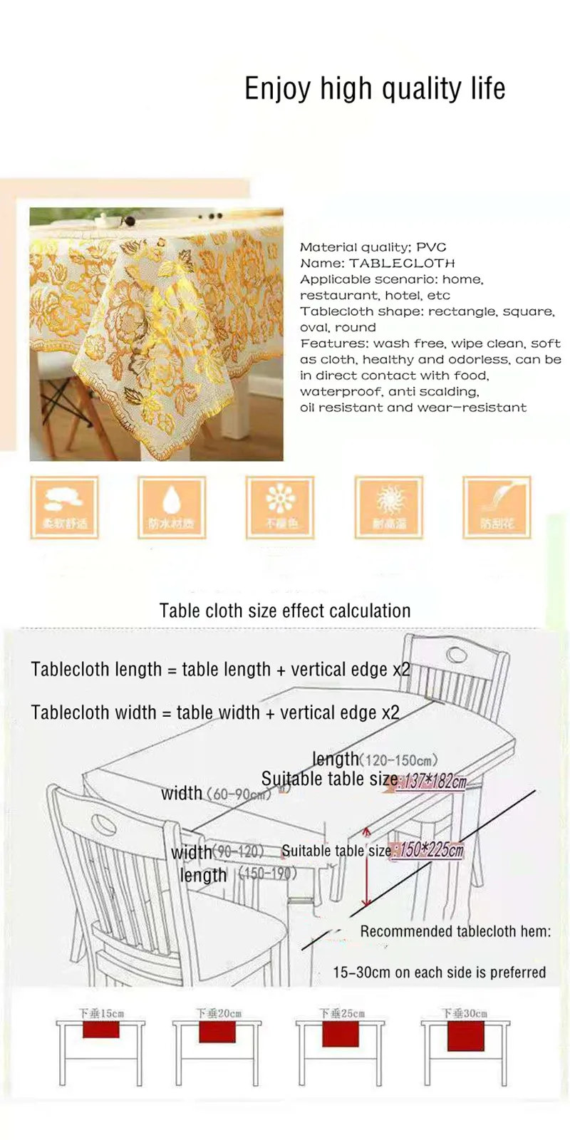 Méthode de traitement : le produit présente les caractéristiques de résistance aux températures élevées.Veuillez préparer une bassine d’eau chaude (environ 70℃), faites tremper la nappe dans le bassin pendant 2-3 minutes, puis sortez-la et séchez-la, et le pli disparaîtra.