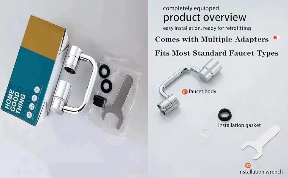 【Compatibilité universelle – Facile à installer】 Les adaptateurs et les rondelles sont inclus dans notre colis. Le 1080 ° L’extension de robinet d’évier est livré avec plusieurs adaptateurs et convient à la plupart des types de robinets standard. Pas d’outils requis : l’attache-le en quelques secondes et améliorez instantanément votre évier.