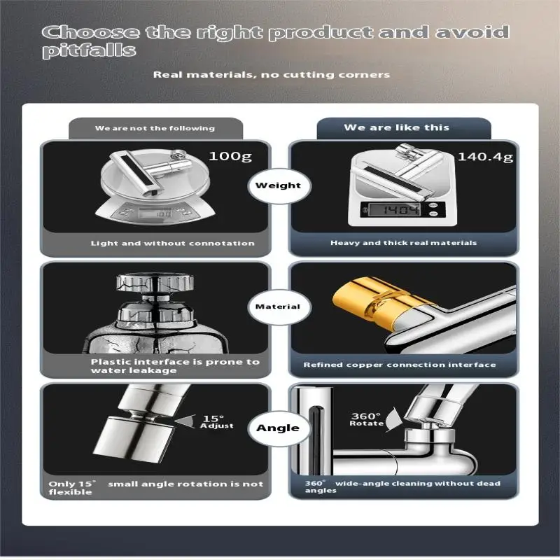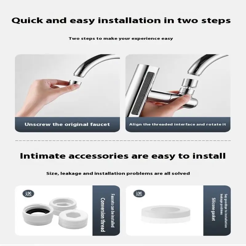 2.Rotation libre universelle : 360° sortie d’eau rotative pour un nettoyage sans angles morts