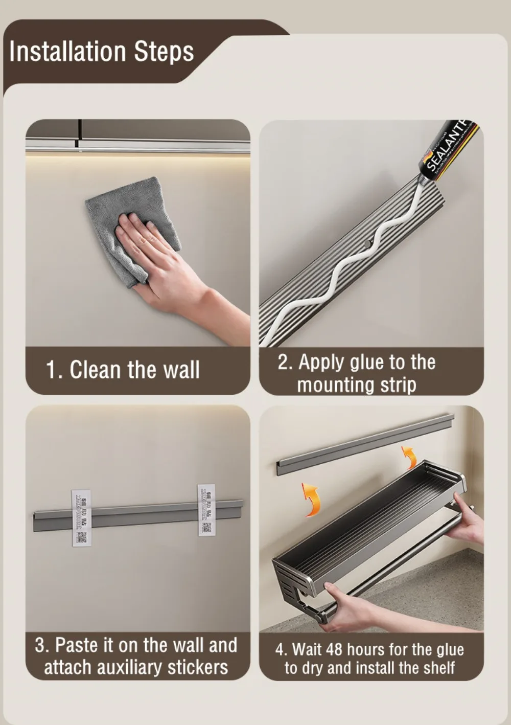 2 types d’installation : utiliser la colle ou utilisez la vis (besoin de percer sur le mur)