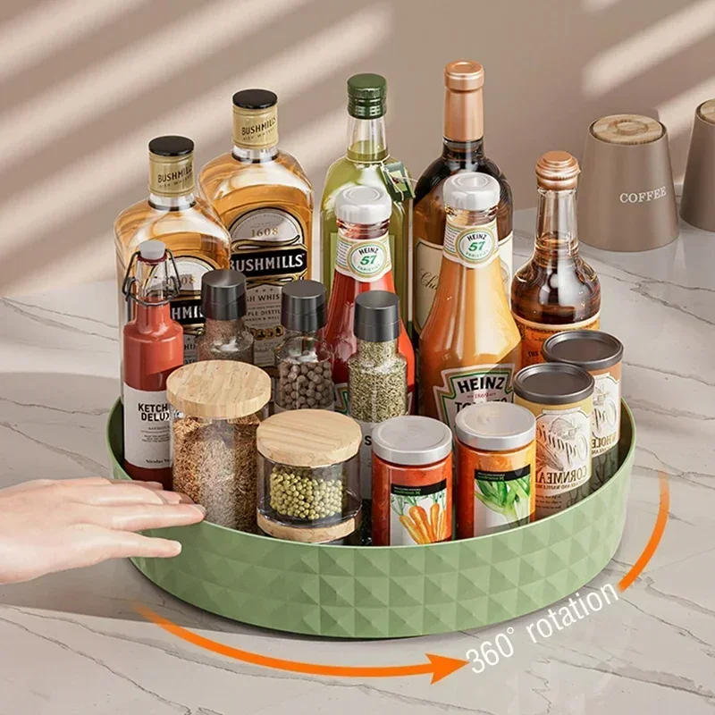Glissement facile – 360° Rotation : le fond est antidérapant et stable, et la table rotative tourne sans glisser, vous permettant d’accéder facilement aux bouteilles d’épices, aux fruits et légumes ou aux cosmétiques et produits de soins de la peau sous n’importe quel angle.